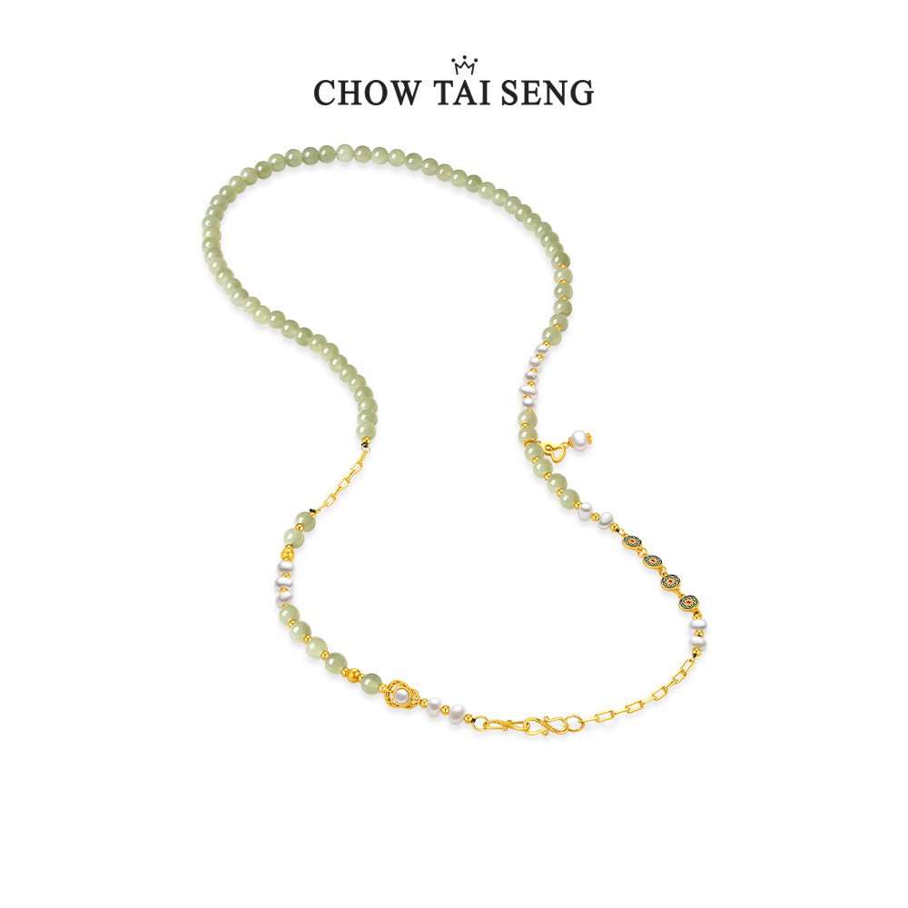 周大生银S925和田玉新中式珍珠项链玛瑙首饰生日情人节礼物送女友