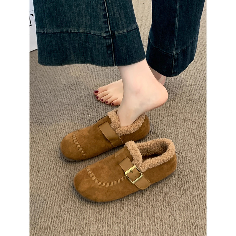 加绒勃肯鞋女2025秋冬季新款厚底一脚蹬懒人豆豆鞋毛毛乐福棉鞋子