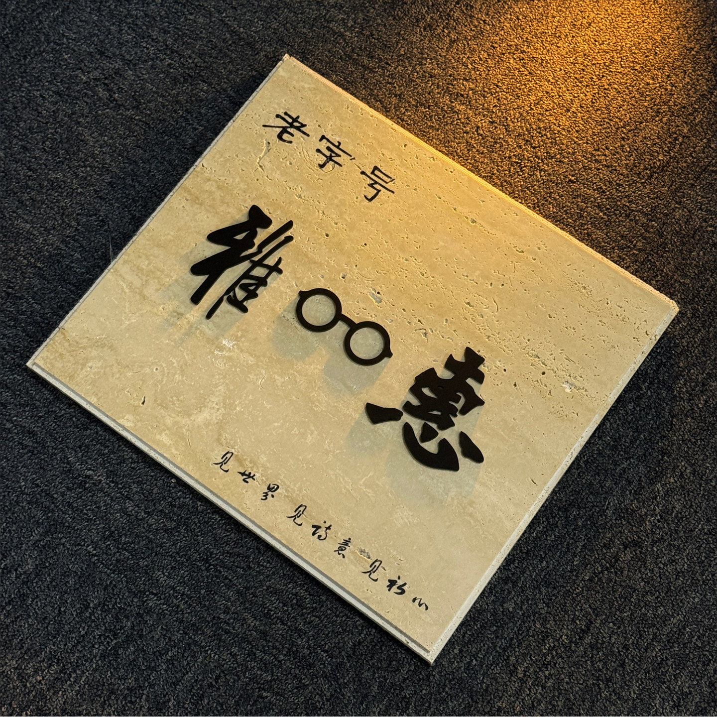 天然石材店铺门口广告牌诧寂风招牌壁灯定制洞石门牌墙面装饰小众标识设计女装服装店logo牌公司形象标牌定制