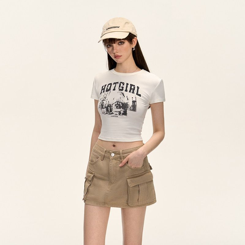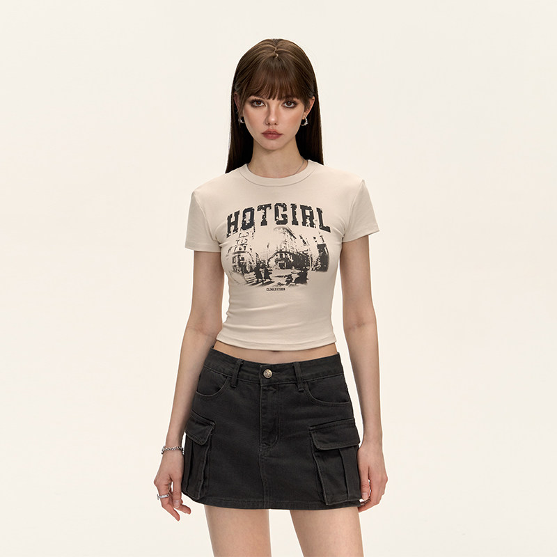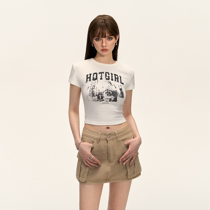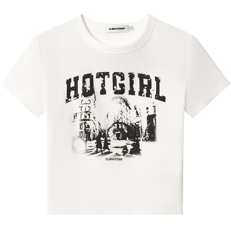 CLIMAX VISION美式复古紧身弹力短款短袖T恤辣妹百搭显瘦打底tee