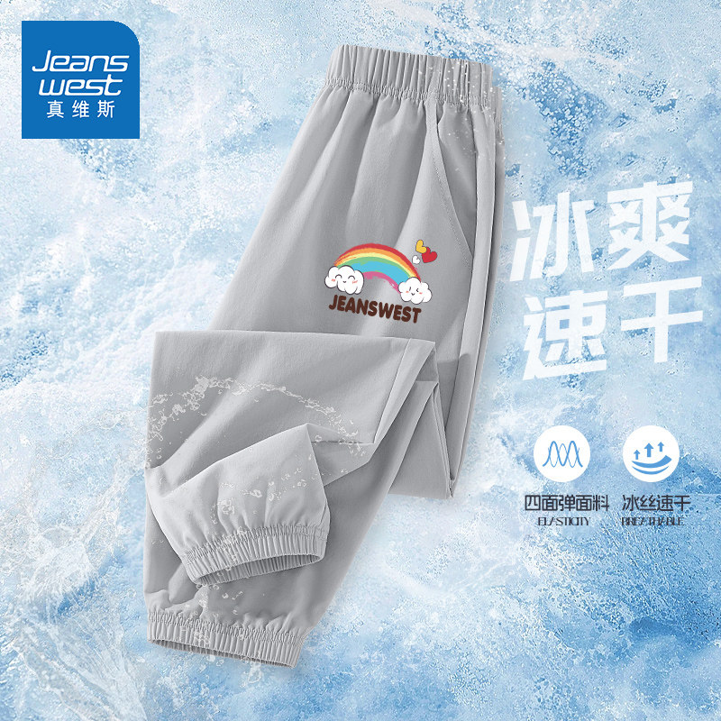 真维斯女童裤子薄款夏季2025新款防蚊裤夏款休闲裤黑色儿童速干裤