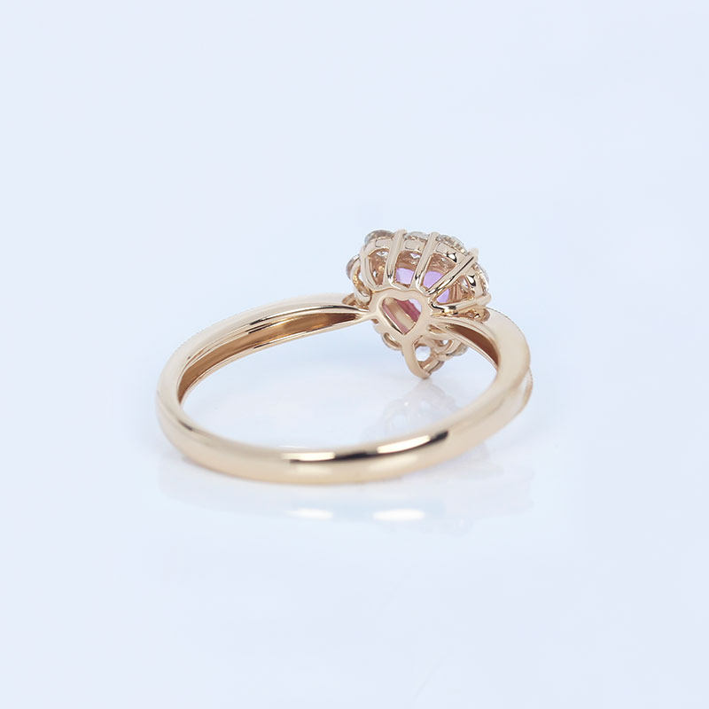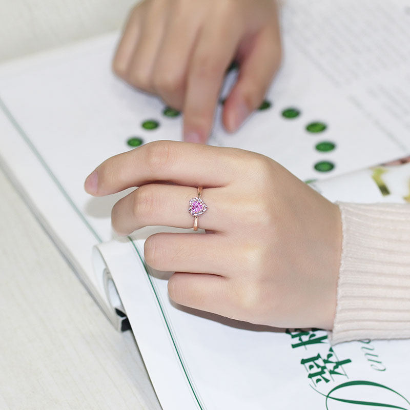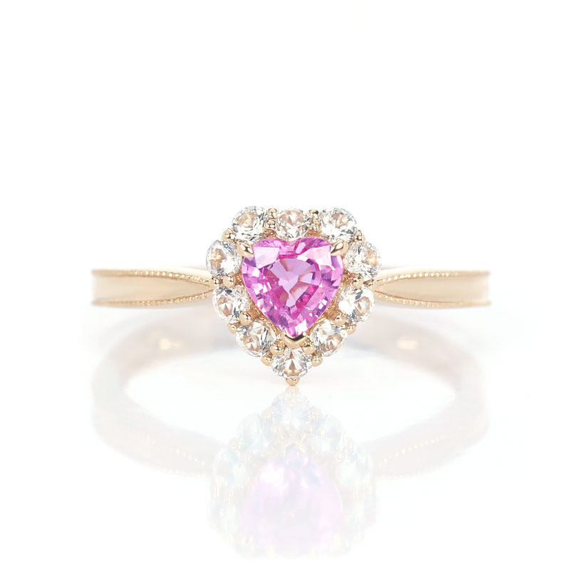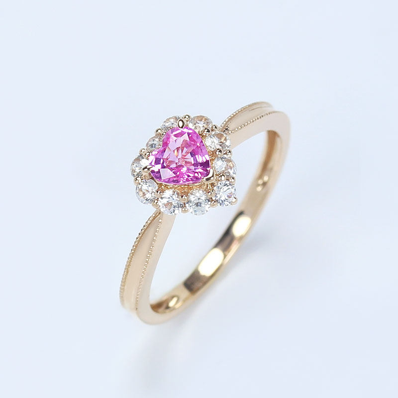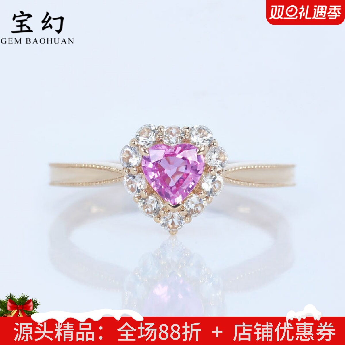 18K玫瑰金樱花粉色天然蓝宝石心形小戒指 甜美晶莹手饰女款正品