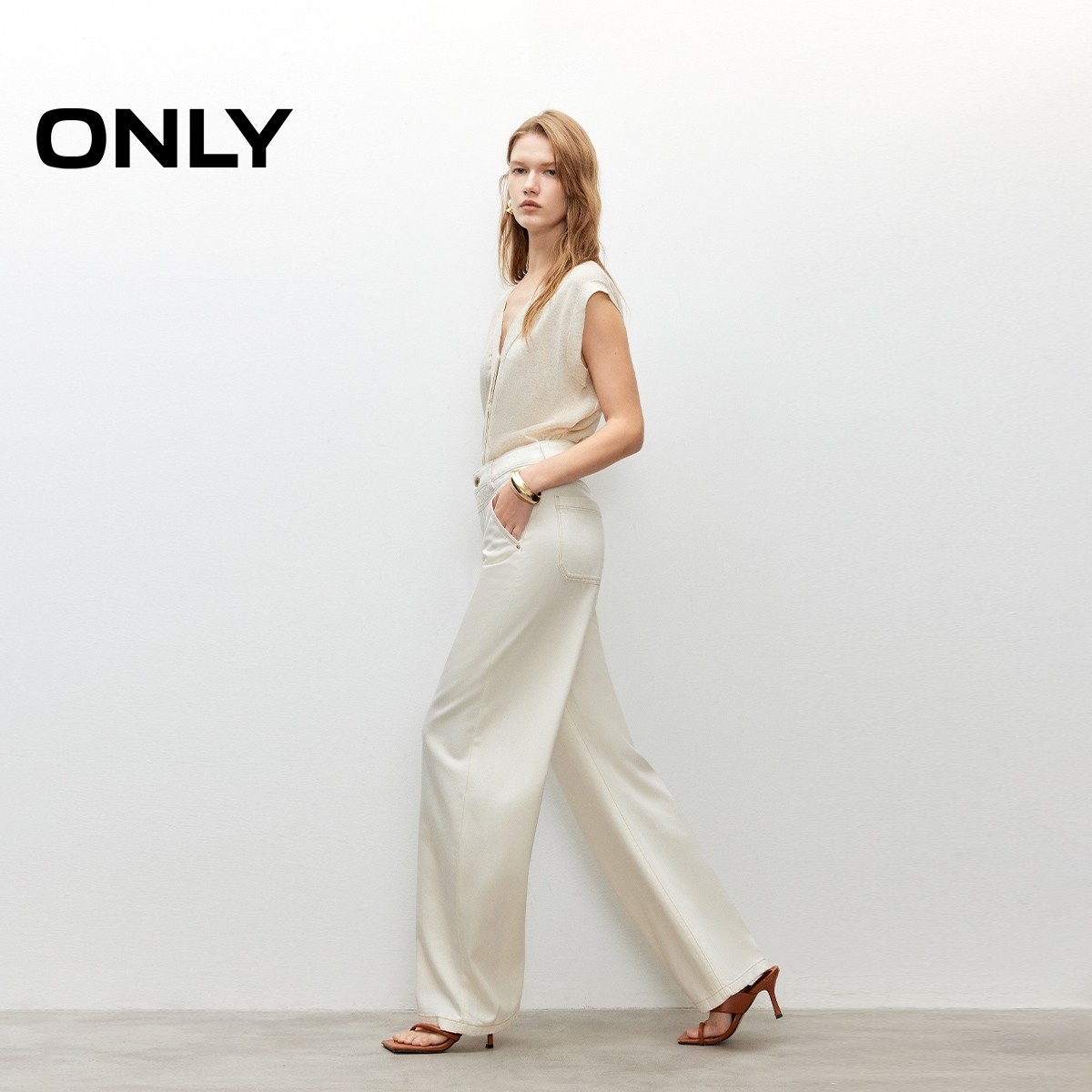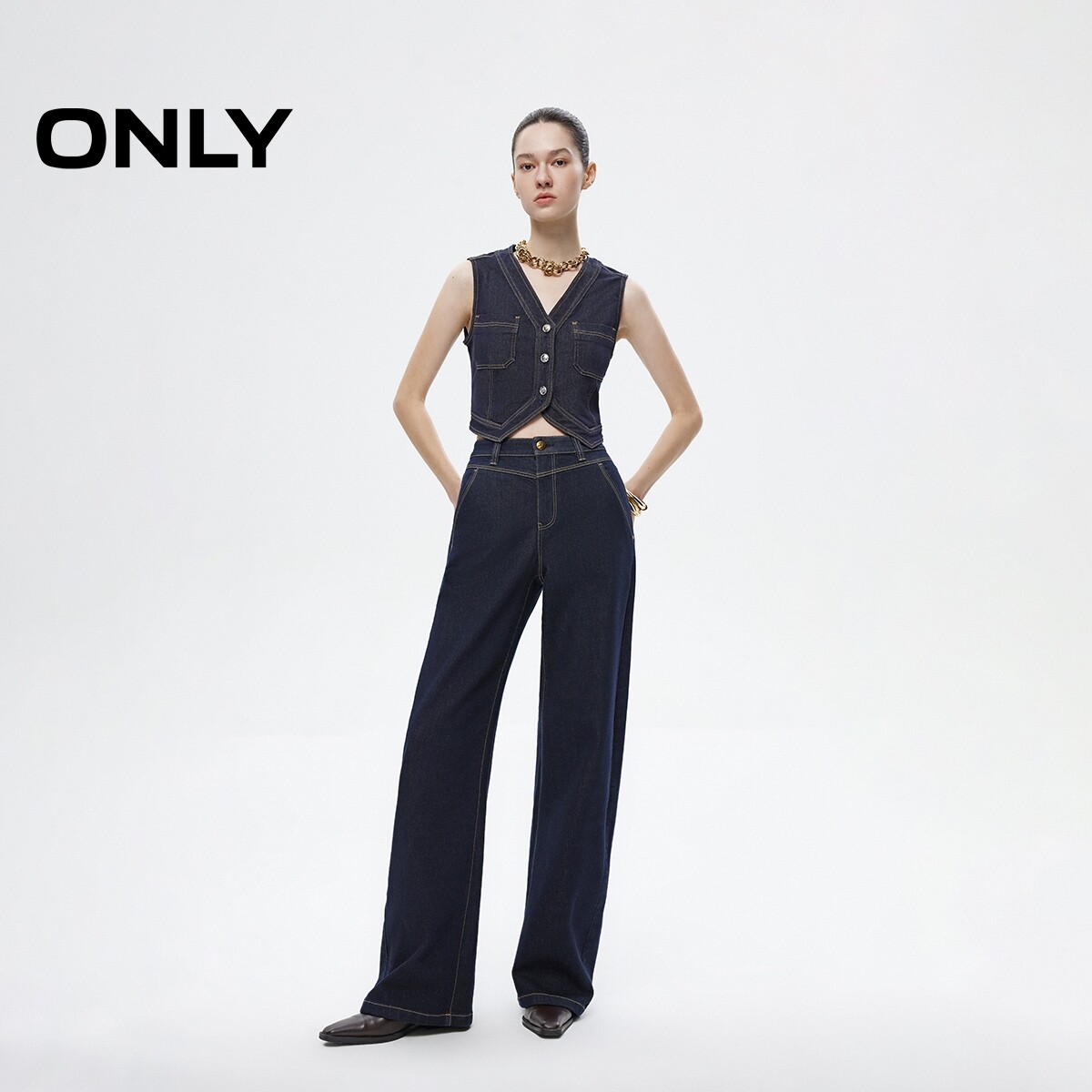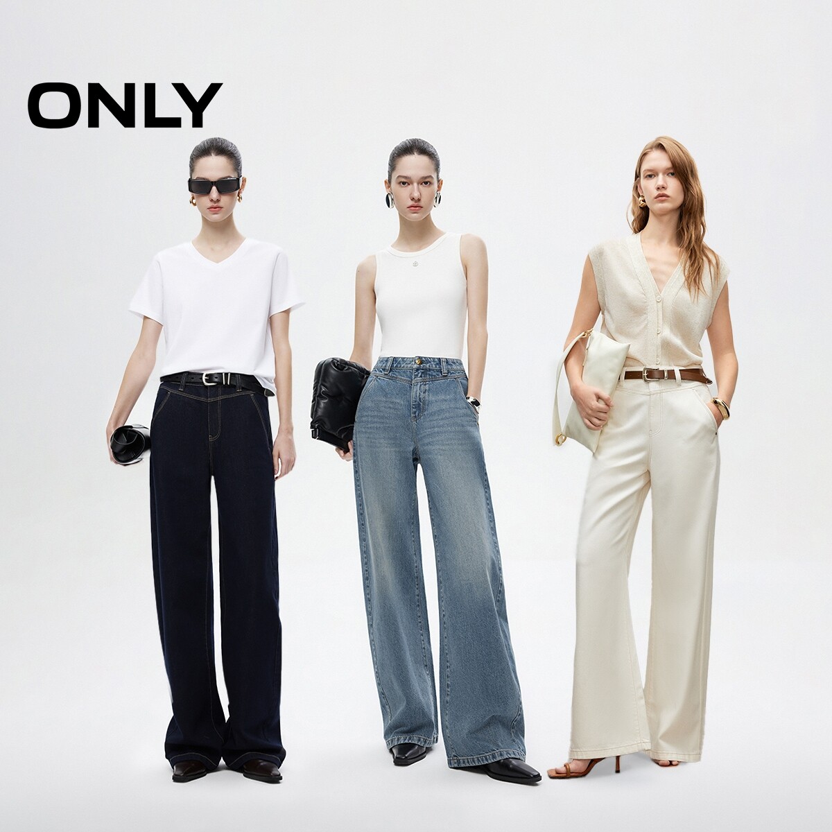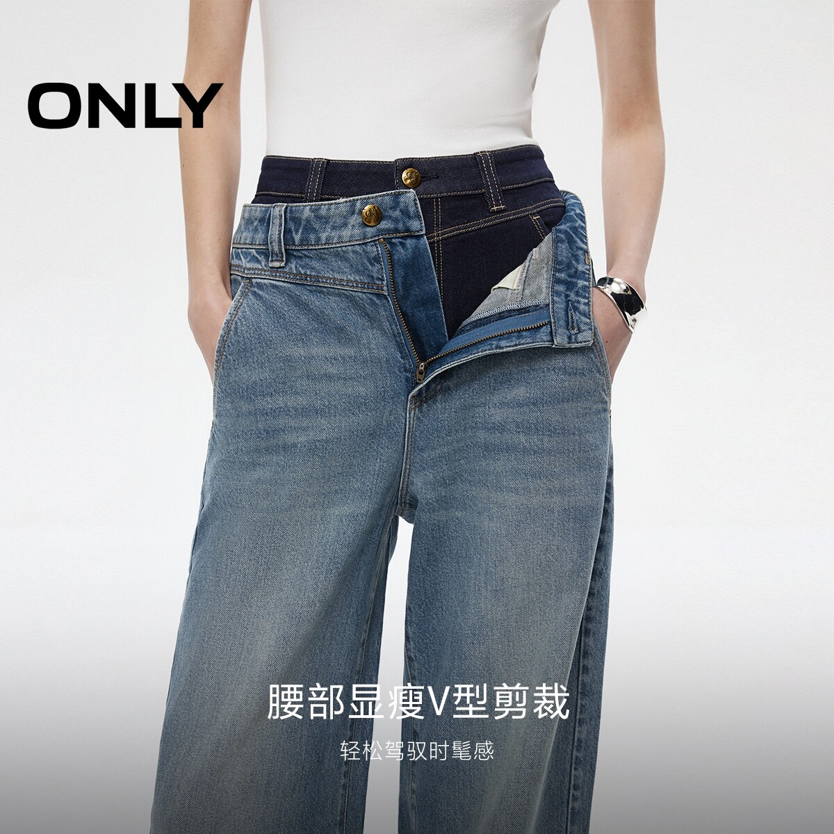 ONLY2026春季新款磨毛时尚弯刀裤舒适香蕉阔腿牛仔裤