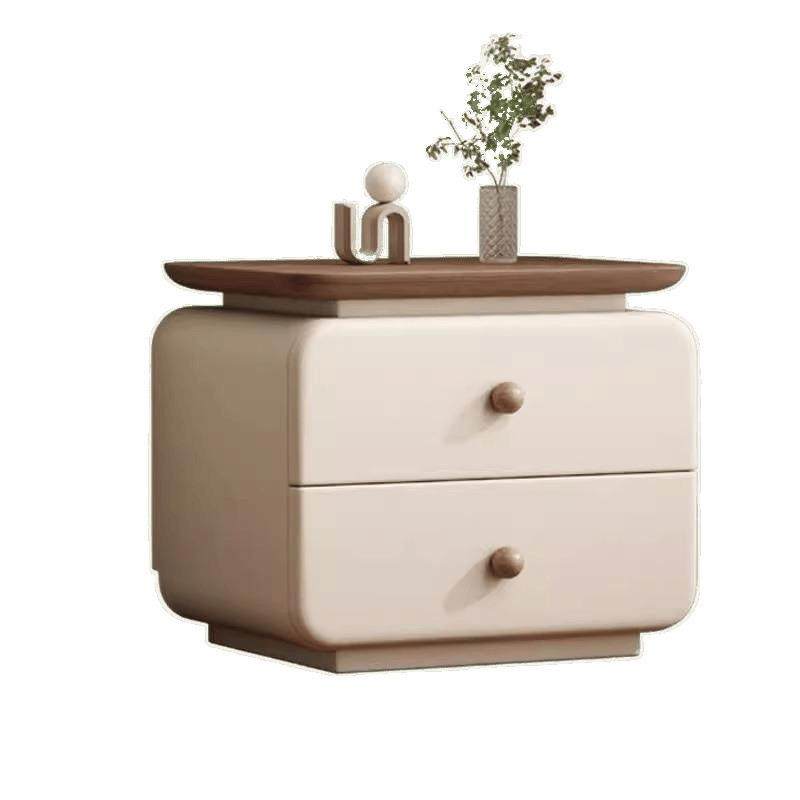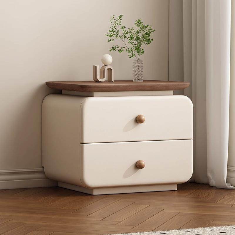 安装实木奶油小型床边柜中古简约家用现代新款极简卧室收纳床头柜