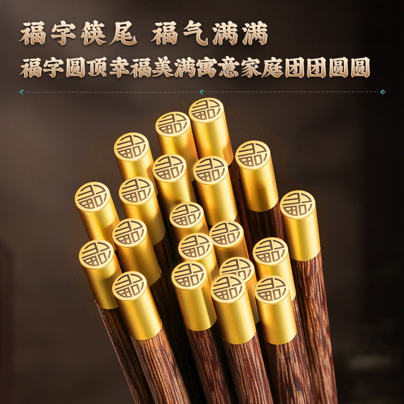 筷子家用高档抗菌防霉实木无漆无蜡轻奢高级感豪华福字鸡翅木筷子