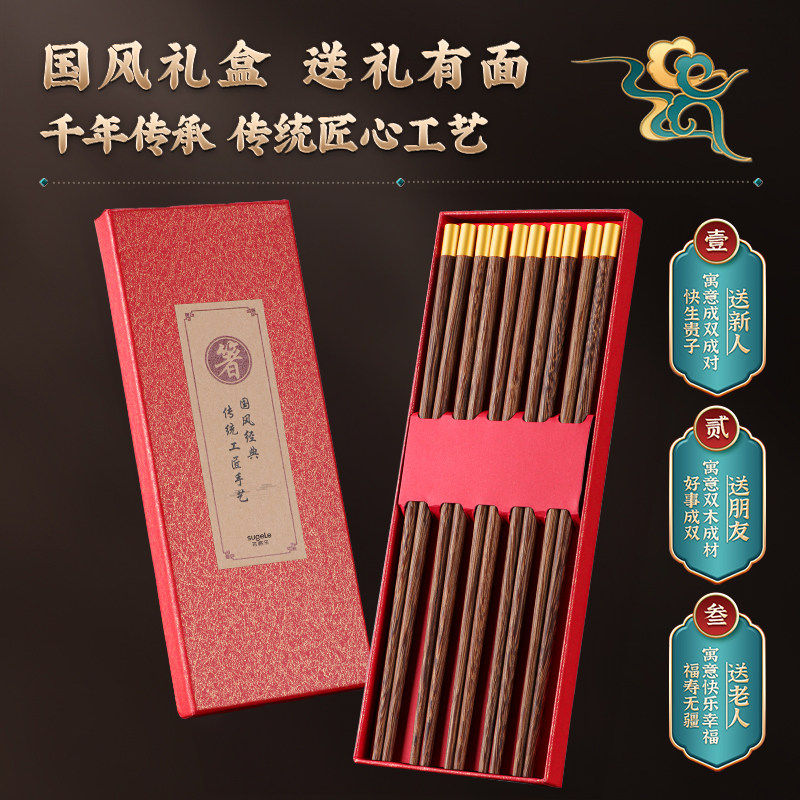 新年筷子家用高档中式筷子防霉防菌儿童鸡翅木筷子套装高级筷子