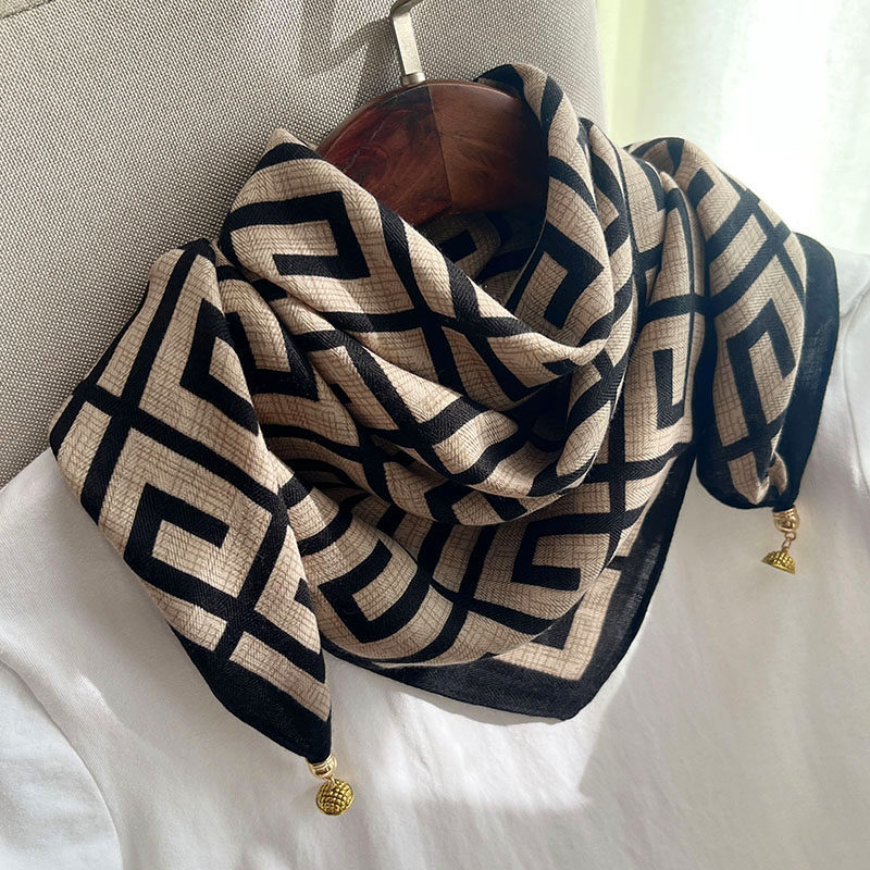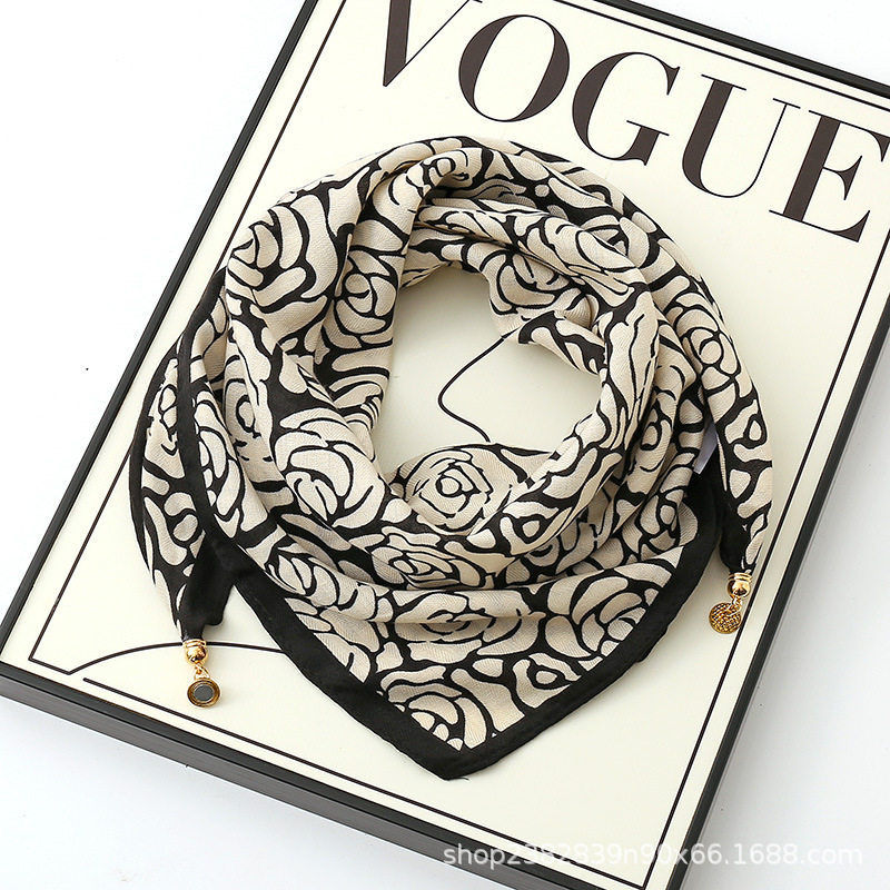 磁吸扣磁吸围巾秋冬季新款方巾百搭高级棉麻丝巾护颈气质三角围脖