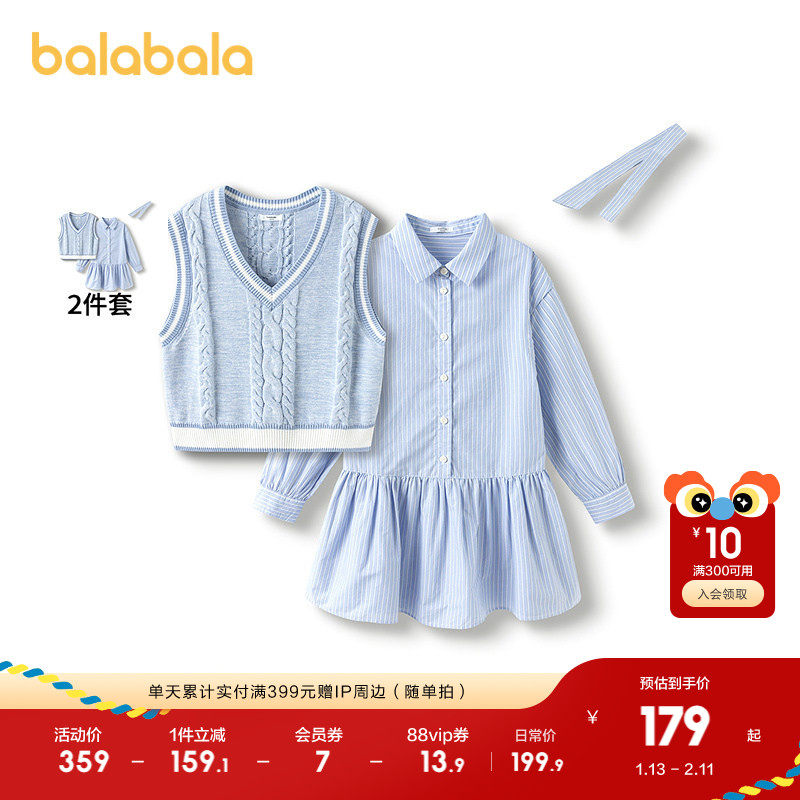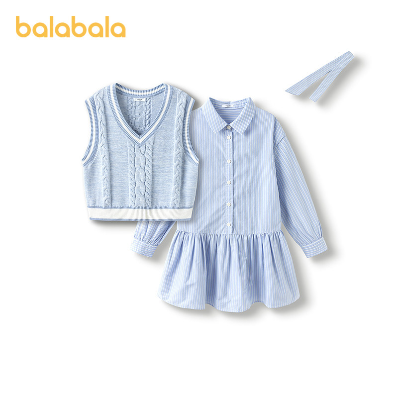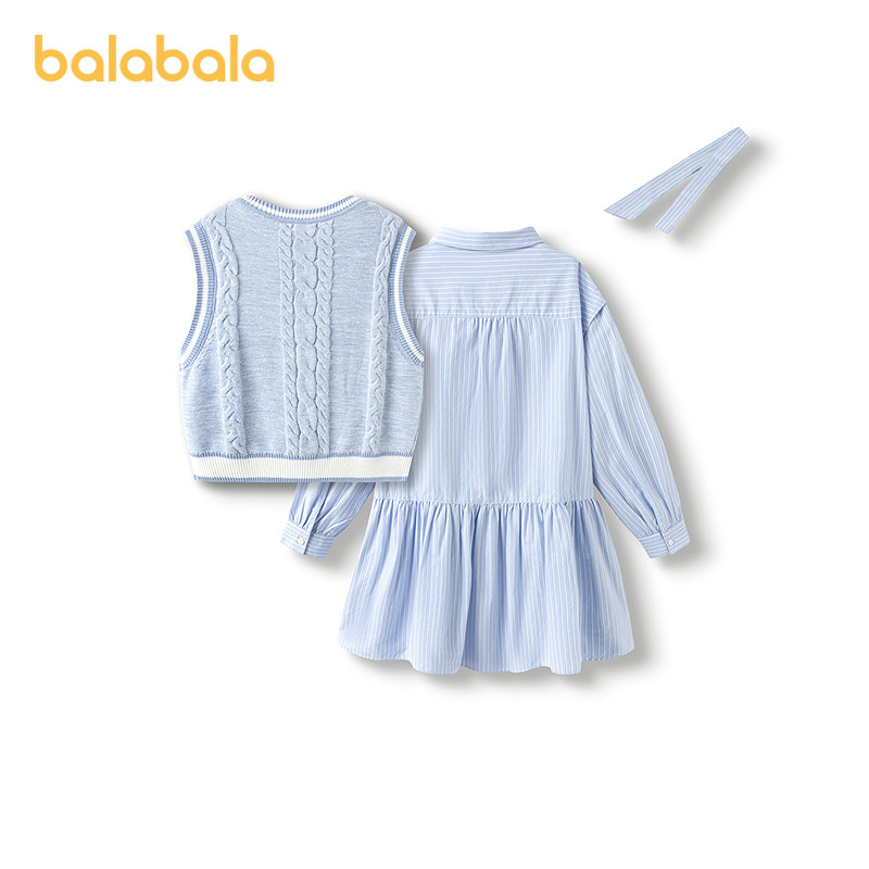 巴拉巴拉童装女童连衣裙儿童2025春装纯棉针织马甲裙子两件套精致
