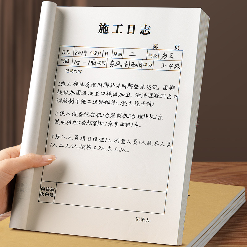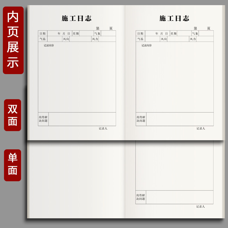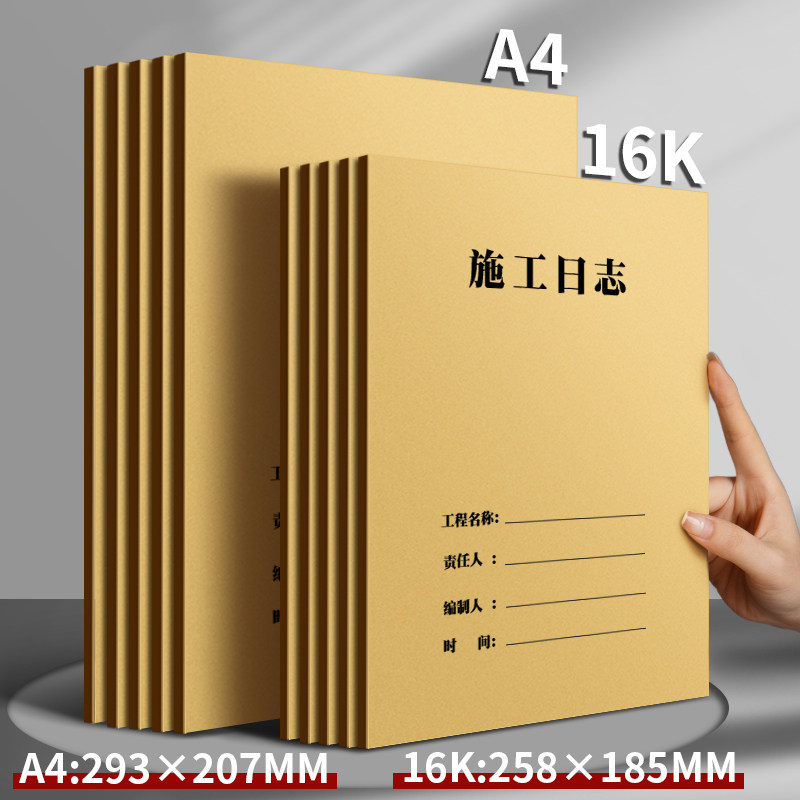 思进施工日志记录本建筑工程监理日志双面装修A4施工日记本工地工作手册行业进度本通用加厚16k简约安全日志