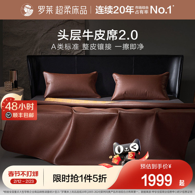 罗莱家纺26新品A类超柔头层牛皮席pro凉席夏天真皮席子轻奢软席