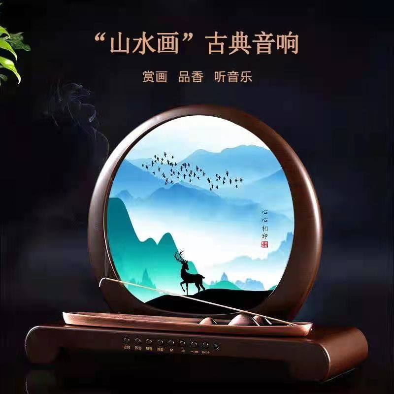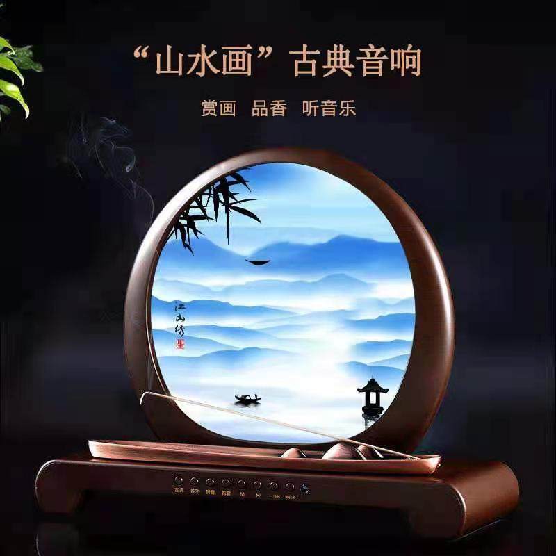 画卷山河图古典音乐机新房送礼摆件养生古筝古琴音乐熏香高档礼物