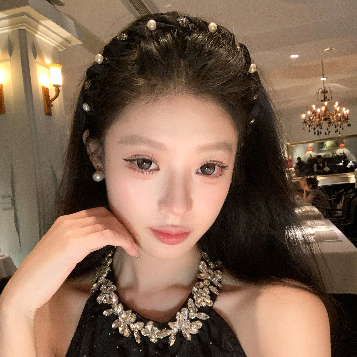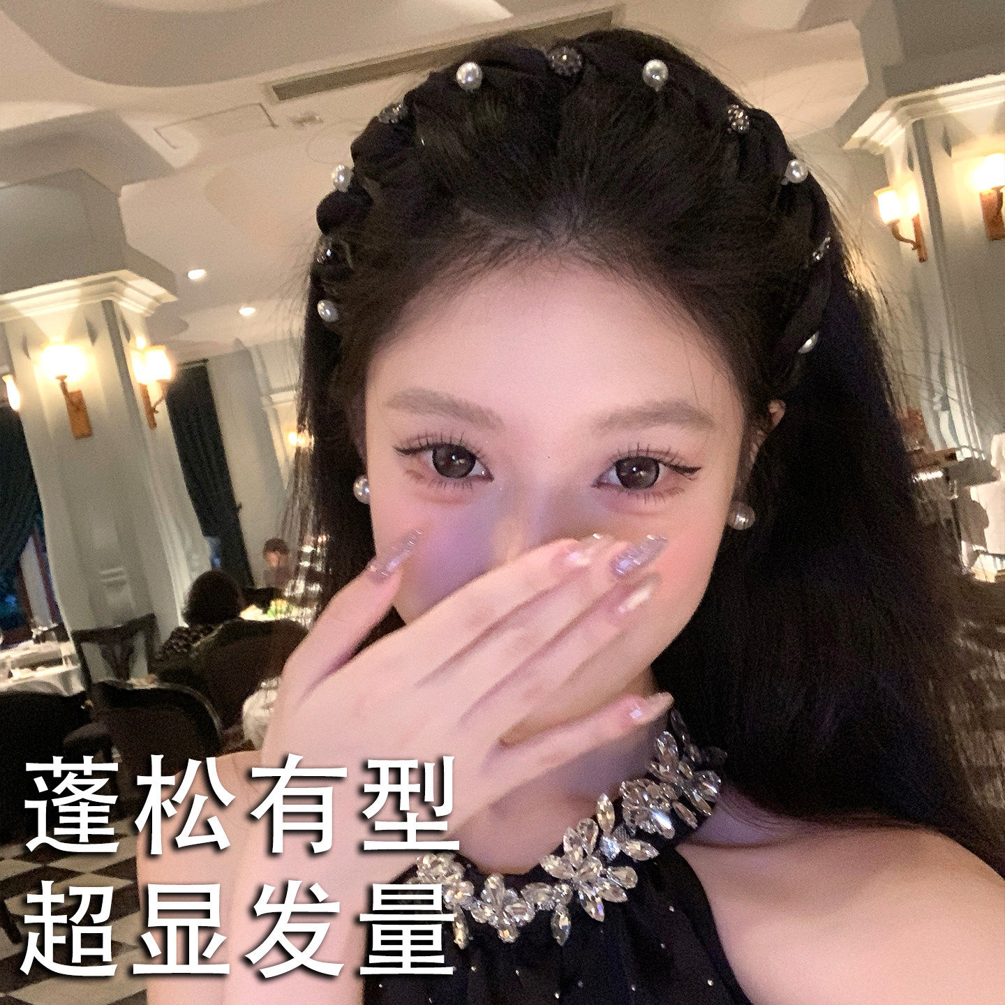 法式闪钻珍珠发箍女高颅顶头箍发饰带齿防滑外戴发卡压发头饰蝴蝶