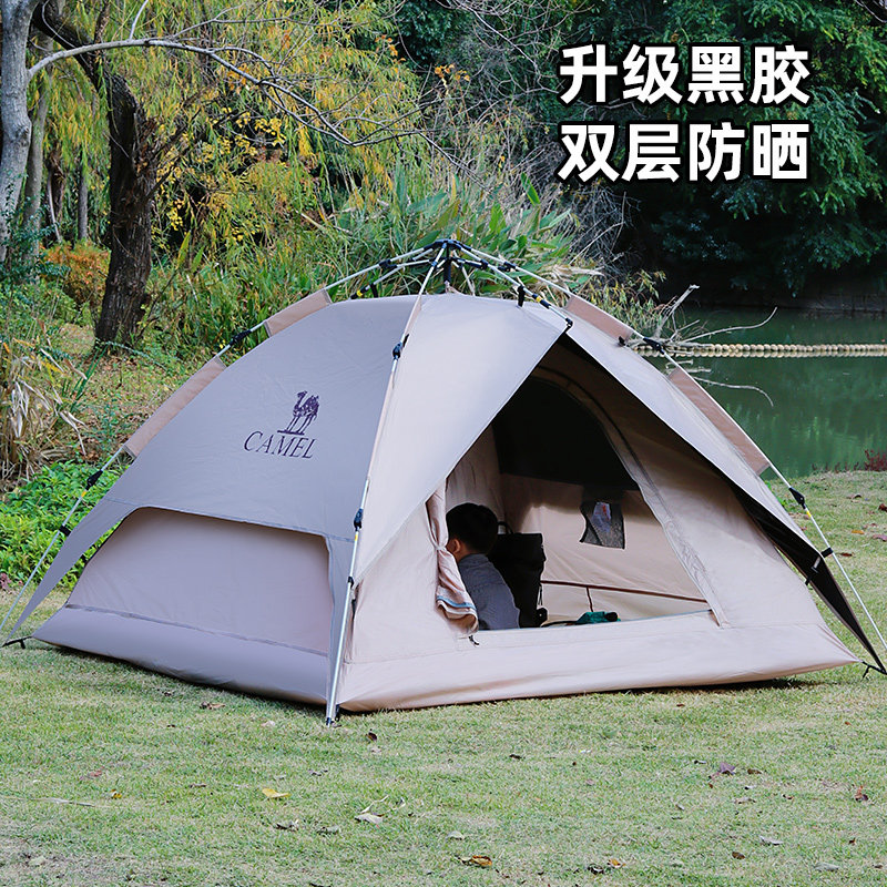 骆驼帐篷户外露营野营过夜便携式折叠全自动全套装备加厚黑胶新款