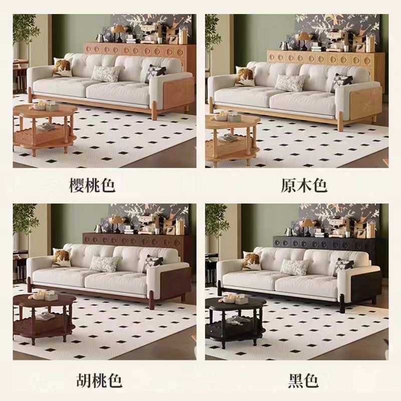 法式中古风原木沙发客厅日式白蜡木纹实木大小户型灯芯绒现代沙发