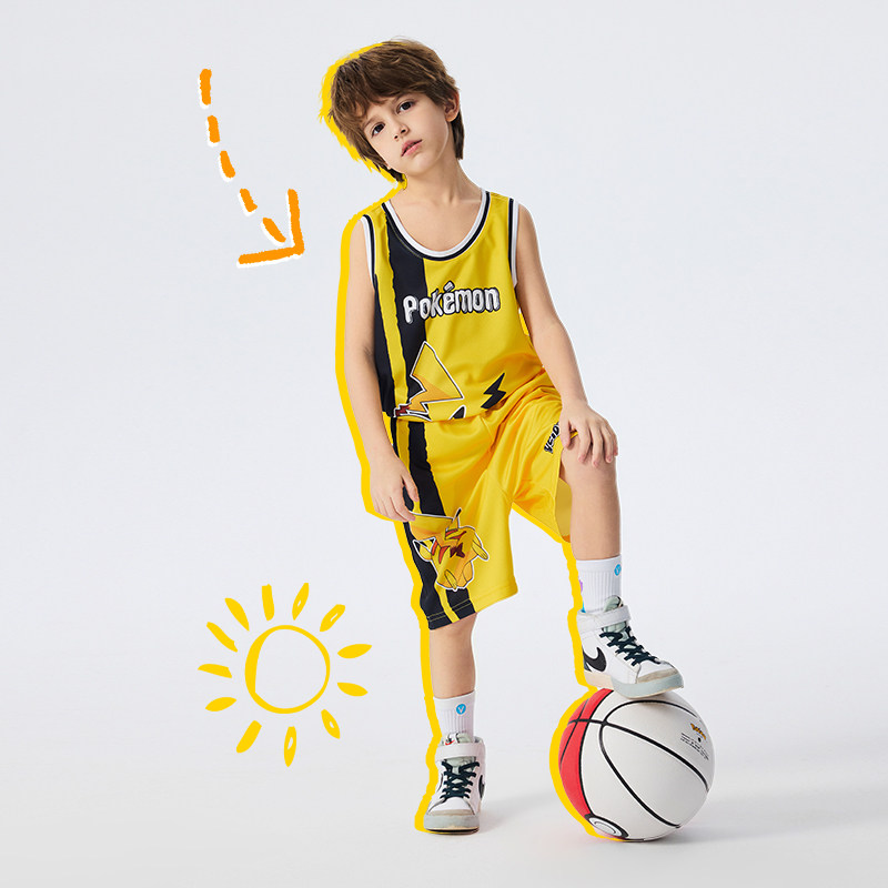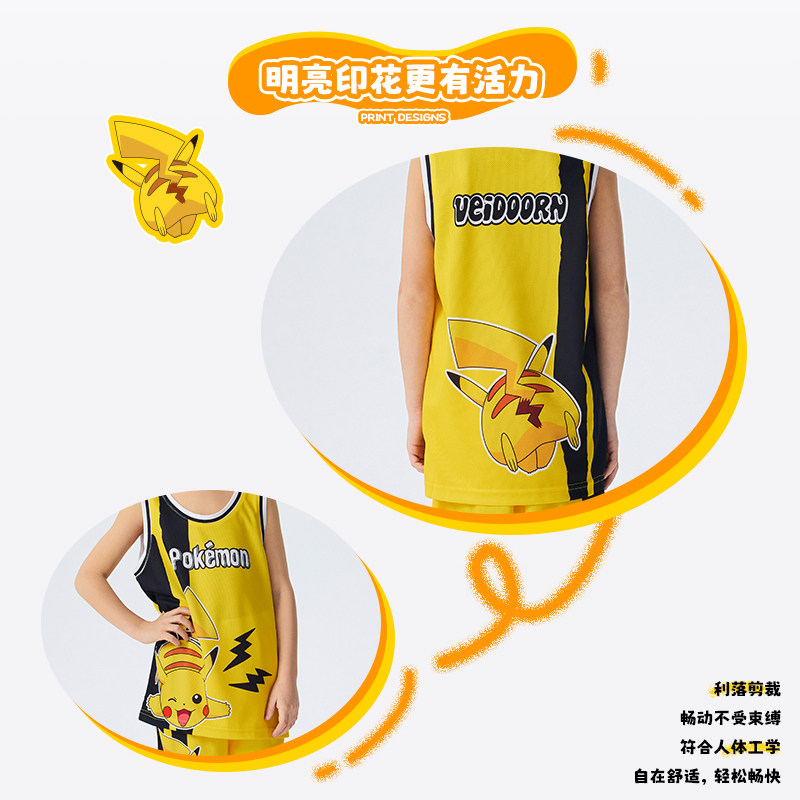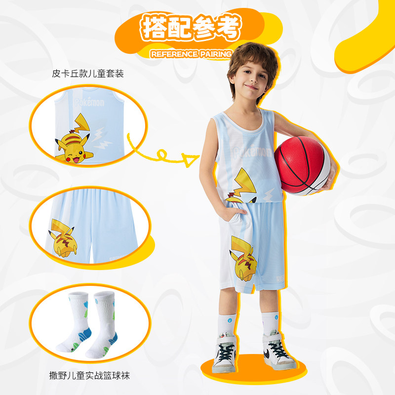 维动宝可梦联名款篮球服套装儿童球衣比赛队服青少年运动训练服