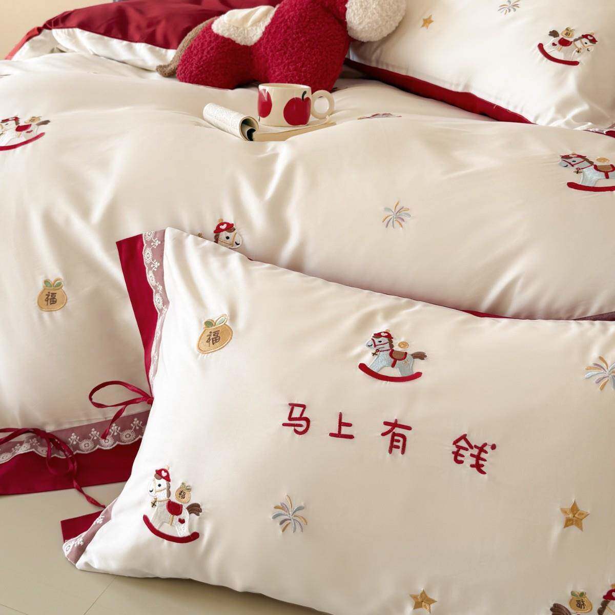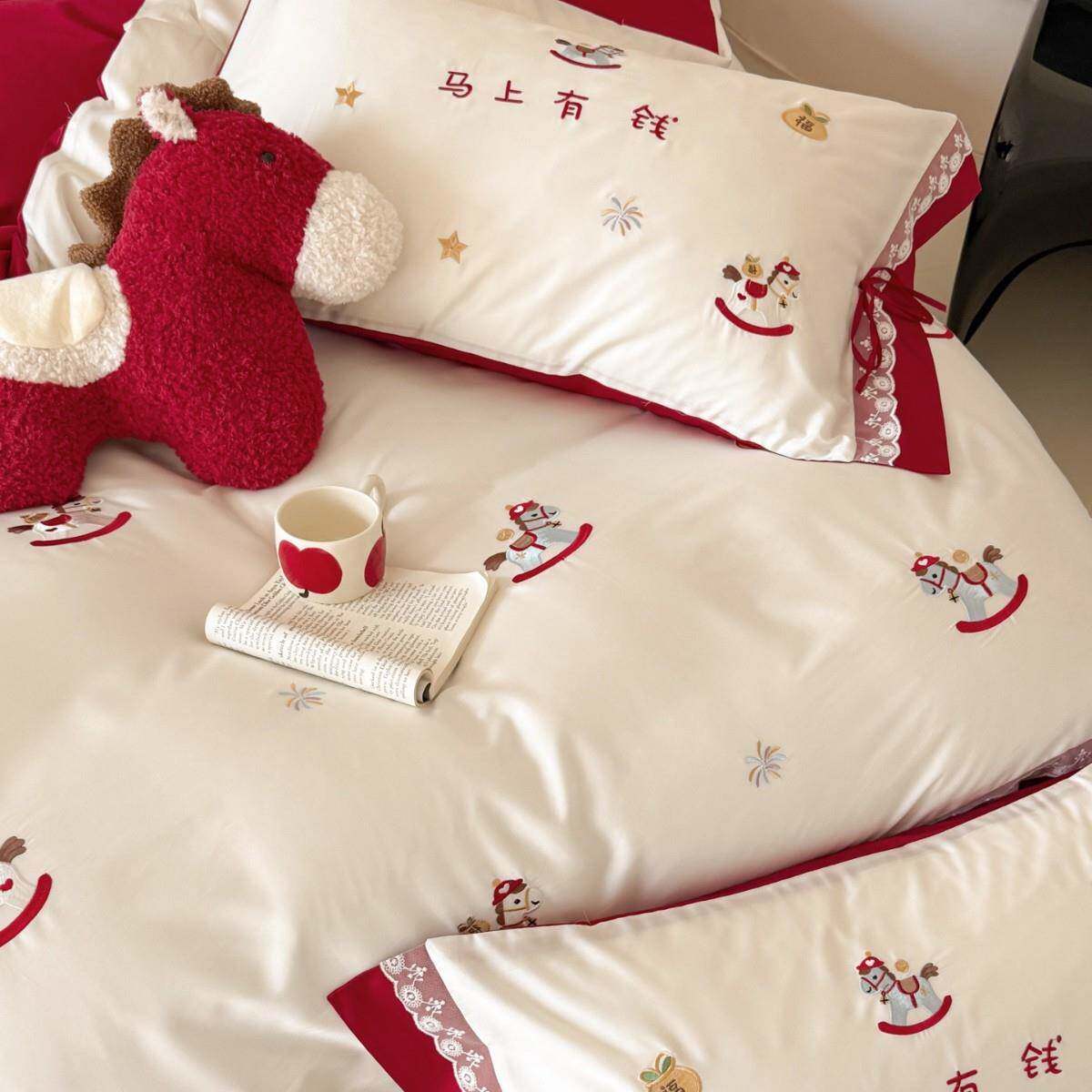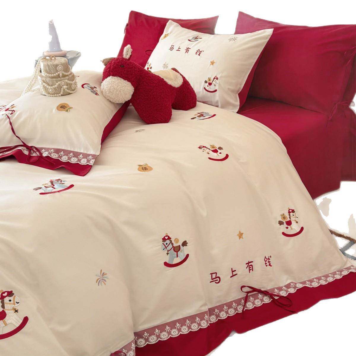 新款长绒棉四件套全棉100纯棉床单被套刺绣套件新婚庆床上用品批