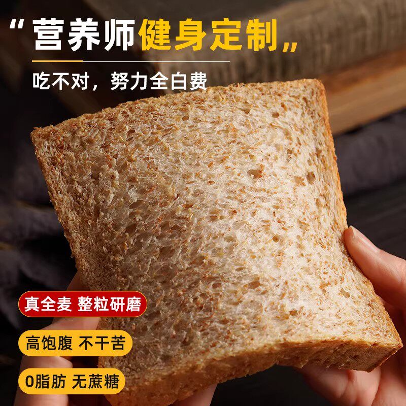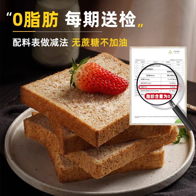 全麦面包0脂肪代餐饱腹食品荞麦粗粮整箱早餐吐司切片热量控糖