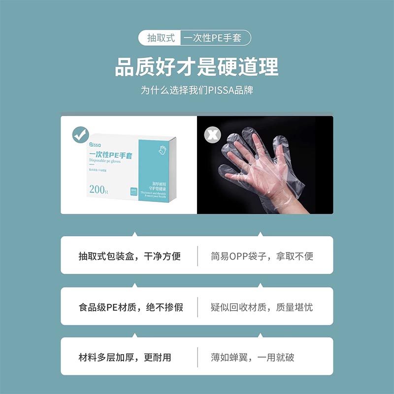 一次性手套pe食品级餐饮专用加厚塑料薄膜商用厨房家用盒装抽取式