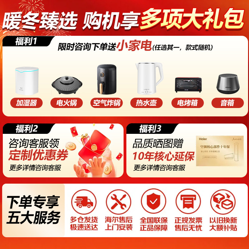 海尔空调1.5匹一级能效家用冷暖壁挂式变频省电小型挂机出租屋用p