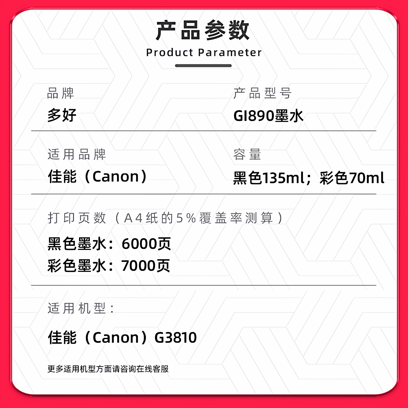 【G3810专用墨水】多好适用Canon打印机墨水佳能3810墨水