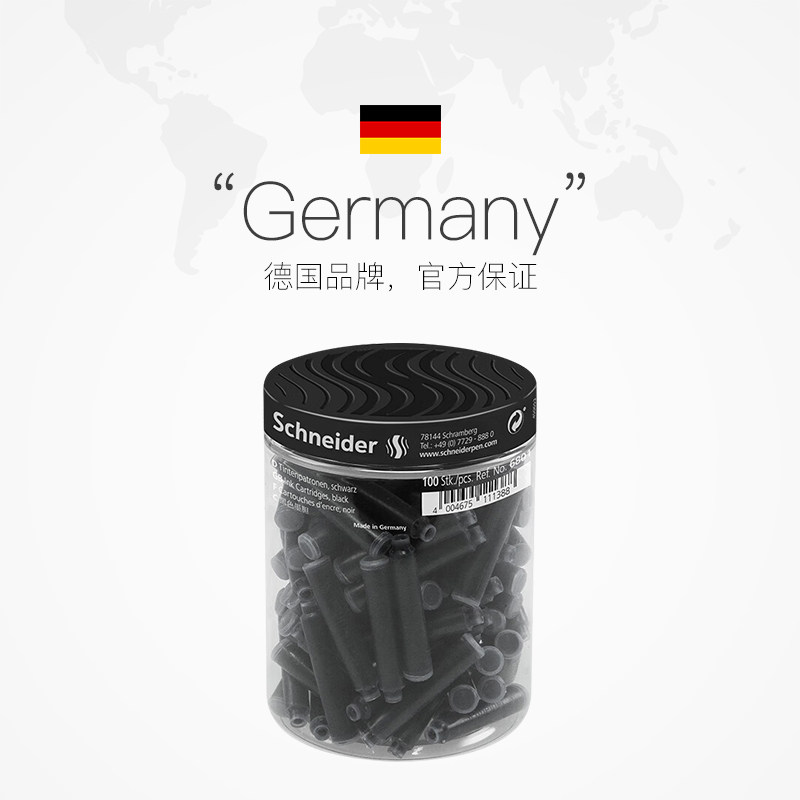 【自营】德国进口schneider施耐德墨胆墨囊盒装钢笔替换练字非碳素不堵笔环保多种适配欧标通用墨水蓝黑三色