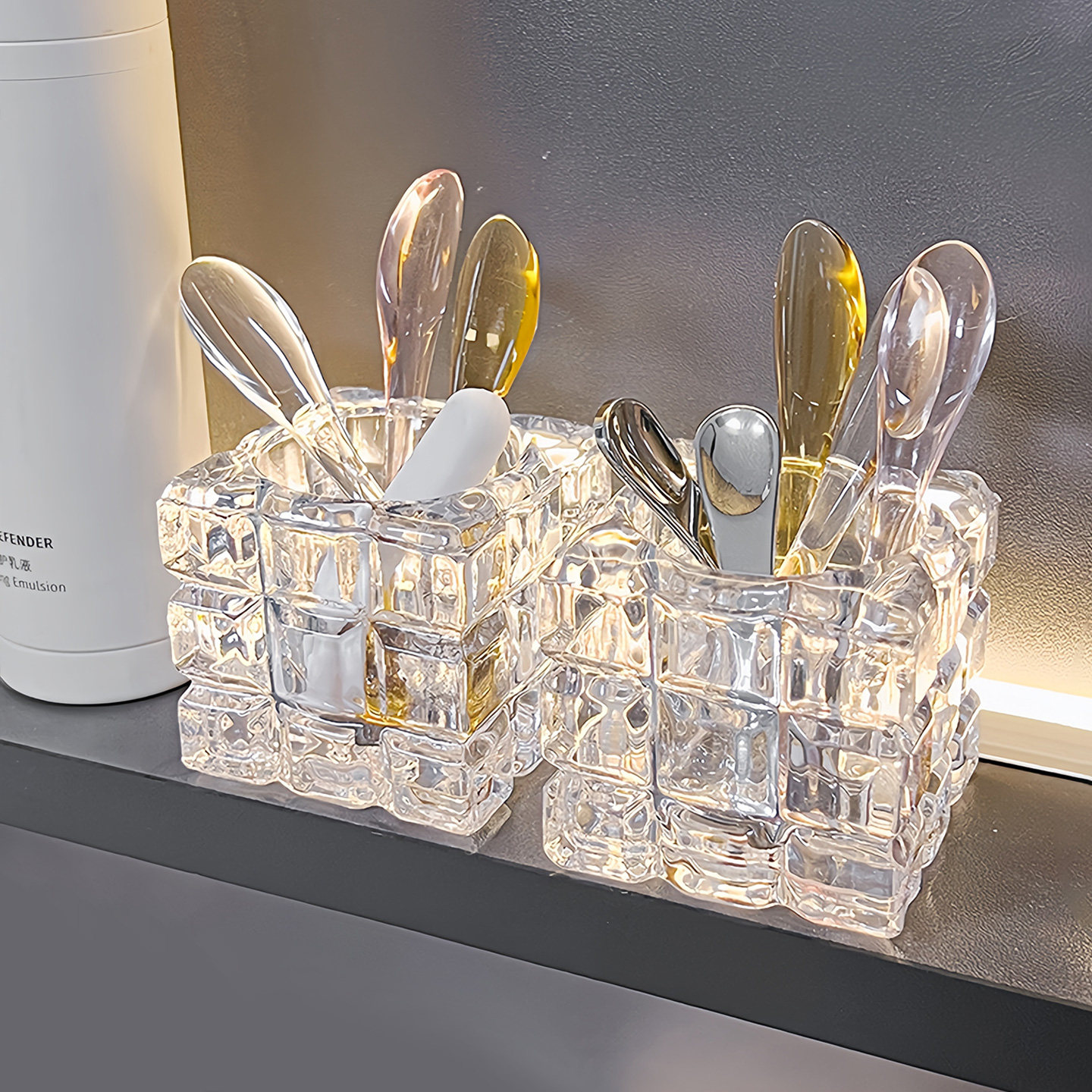 面膜勺子固定器面霜挖取勺柜桌面玻璃镜化妆护肤眼霜挑棒刷收纳盒