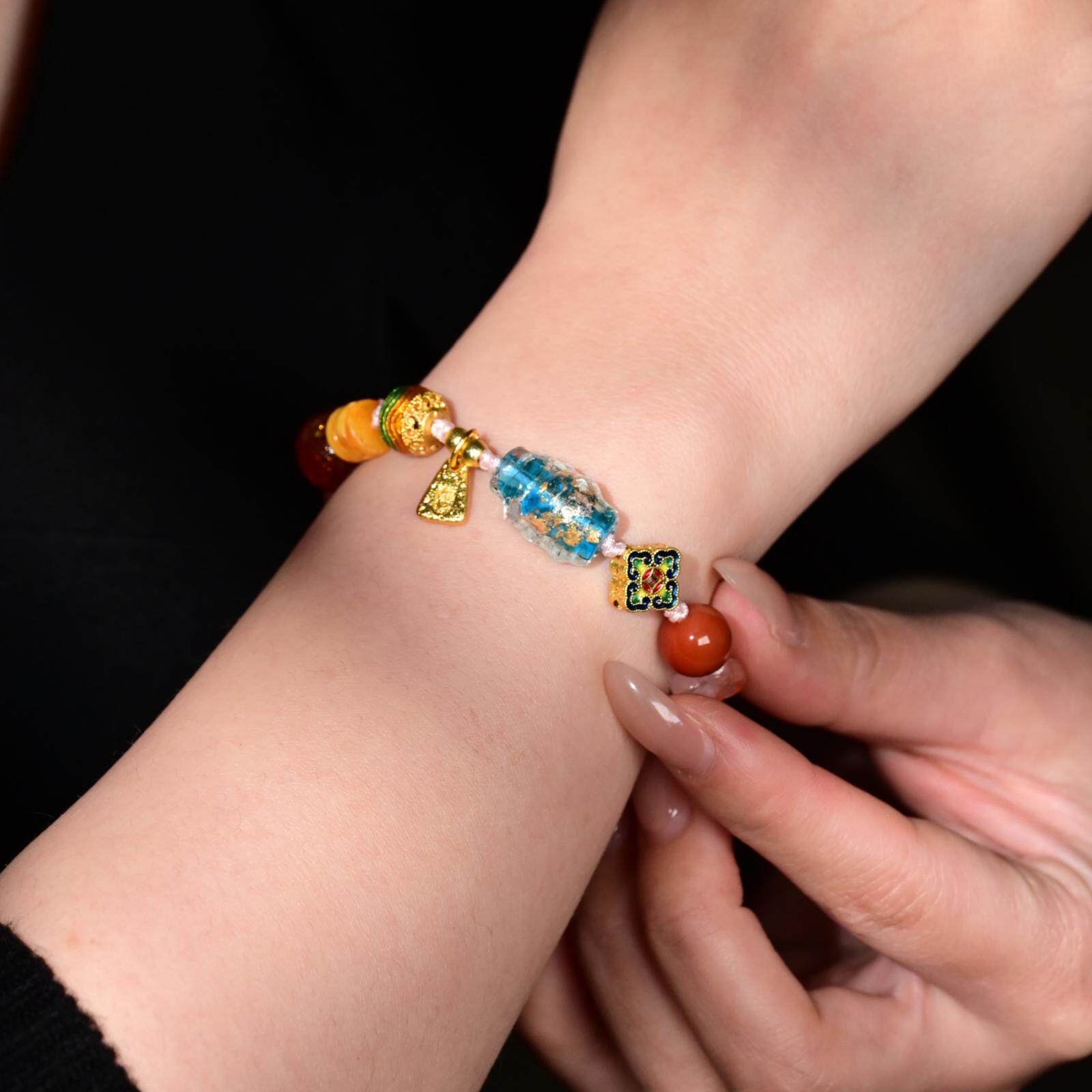 十二通宝多宝手串琉璃手编绳新中式天然南红蜜蜡水晶招财手链