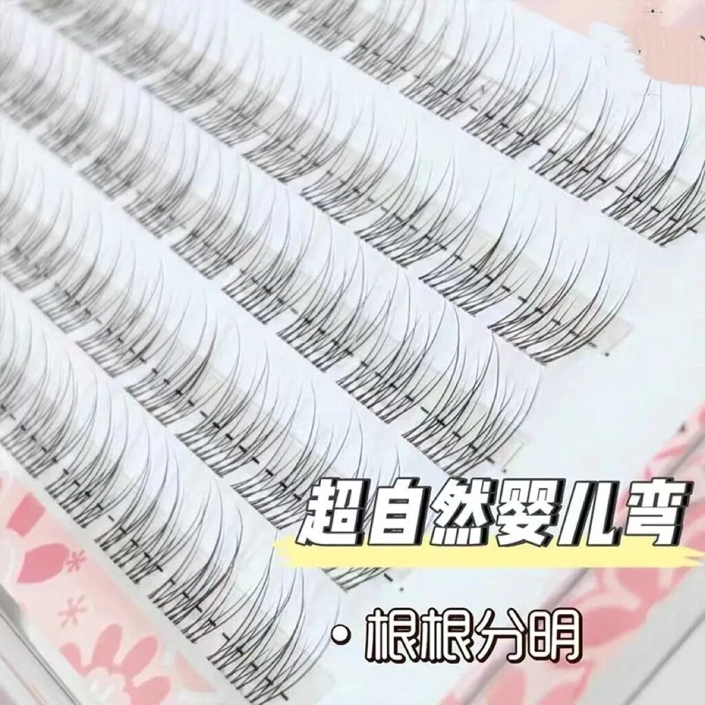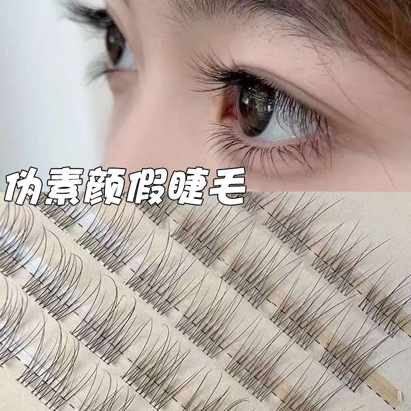 无梗免胶鱼尾透明婴儿弯假睫毛自然分段单簇妈生日常素颜新手仿真