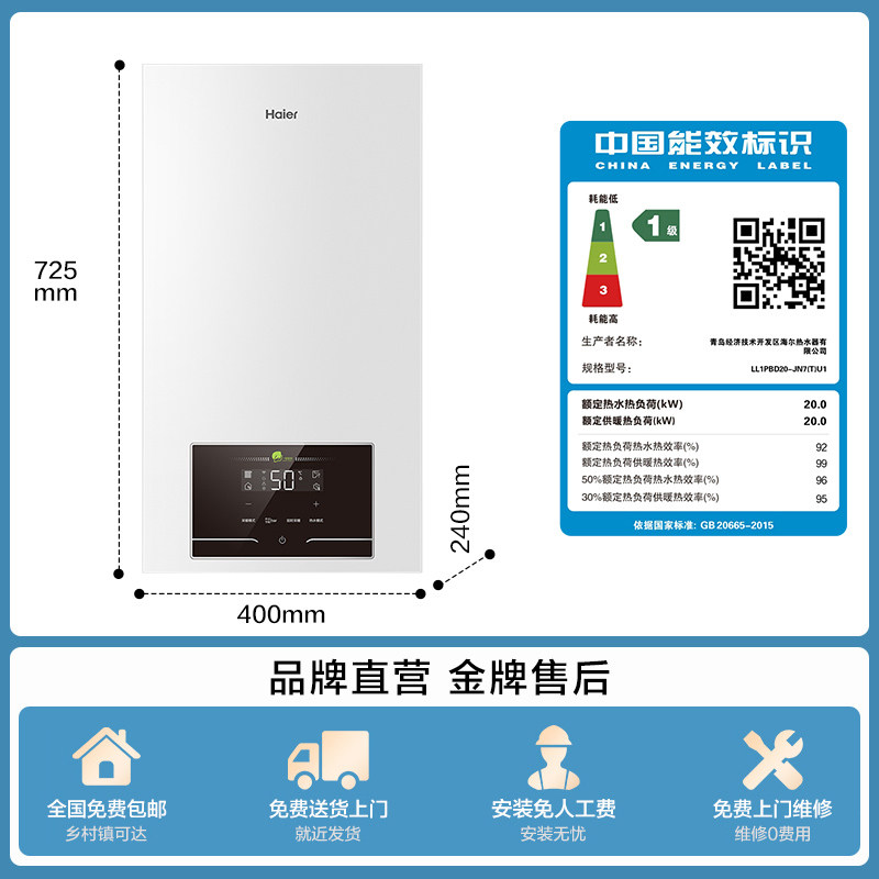 海尔燃气采暖炉壁挂炉天然气家用一级能效冷凝浴地暖两用锅炉统帅