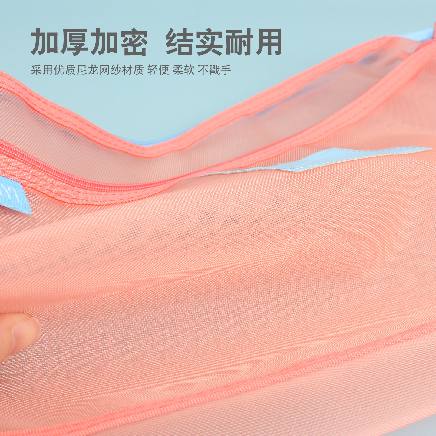 得力网纱拉链袋小号A6迷你透明拉边票据收纳袋考试笔袋加宽三角小巧笔袋考试用简约铅笔袋中高考场文具收纳袋