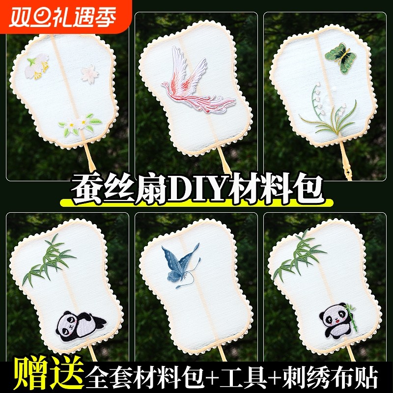 蚕丝扇diy材料包骨架扇框扇骨手工团扇创意非遗自制新中式团建