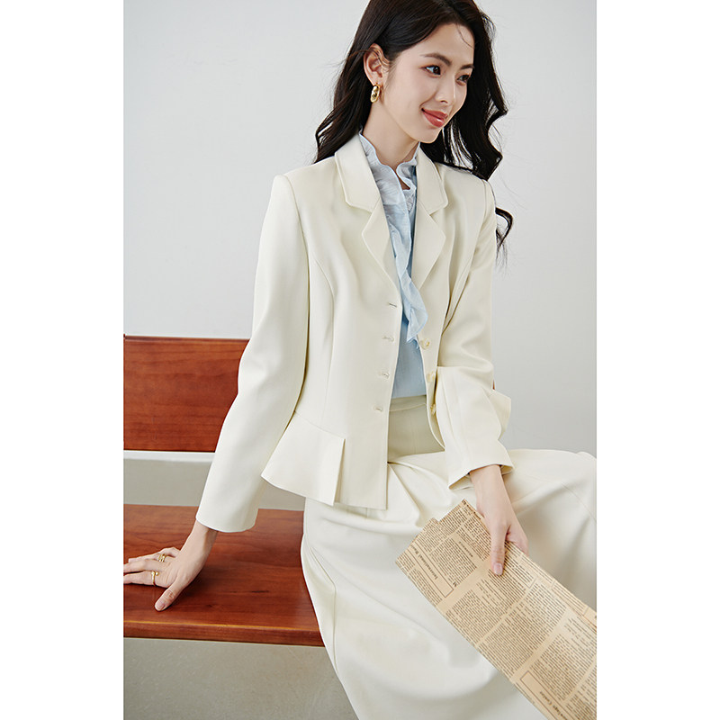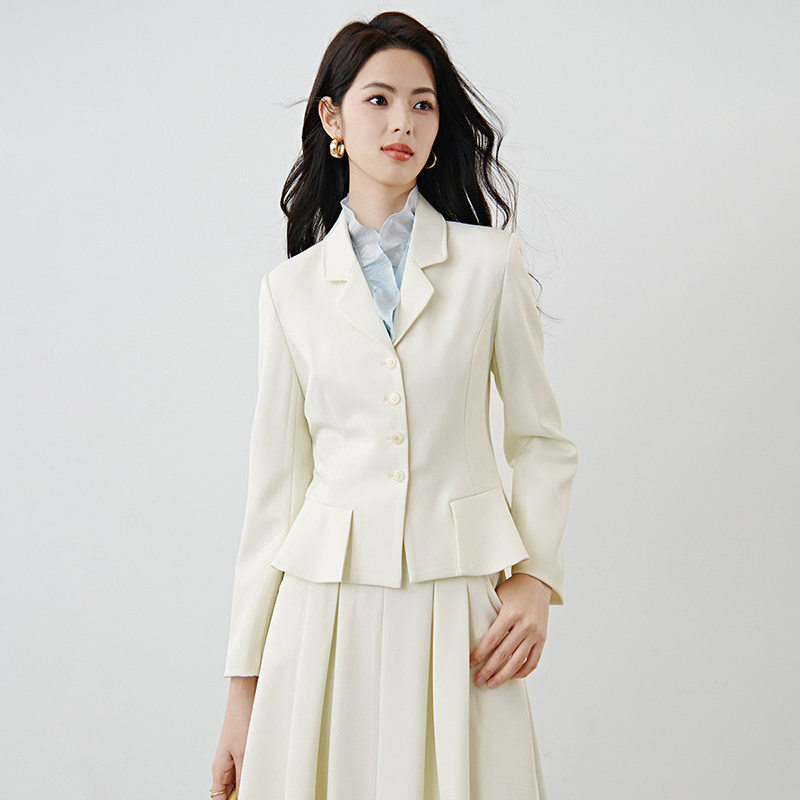 晚白2026春装新款经典翻驳领正肩西装收腰高级感千金风通勤外套女