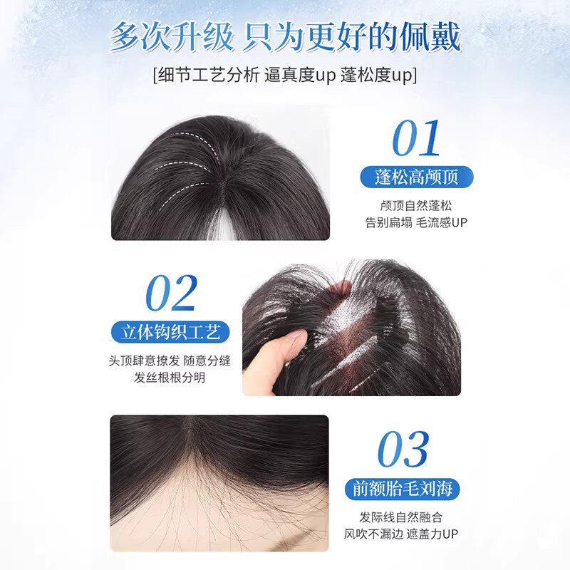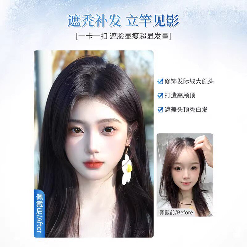 假发女片头顶真发遮白发蓬松高颅顶轻薄隐形增发量空气八字假浏海