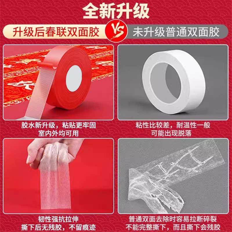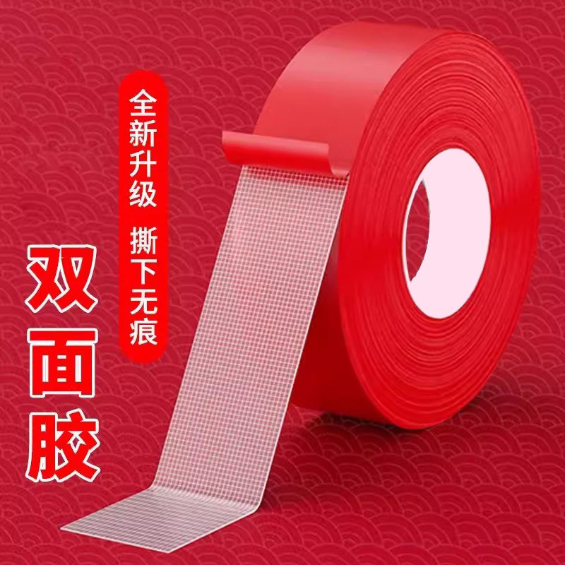 贴春联无痕双面胶对联专用胶带不留痕多功能红色布基胶布高粘度强