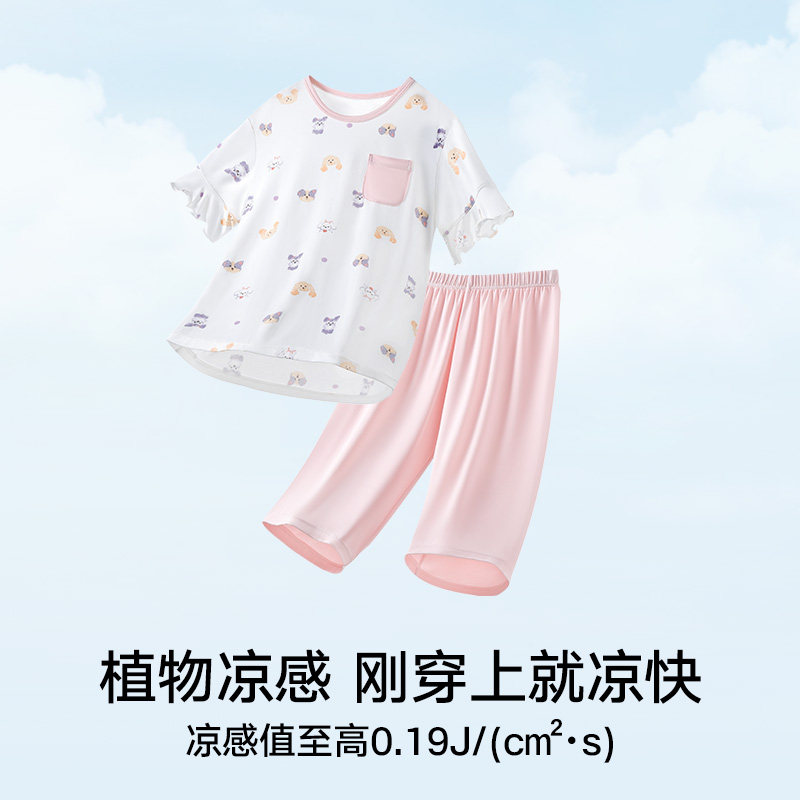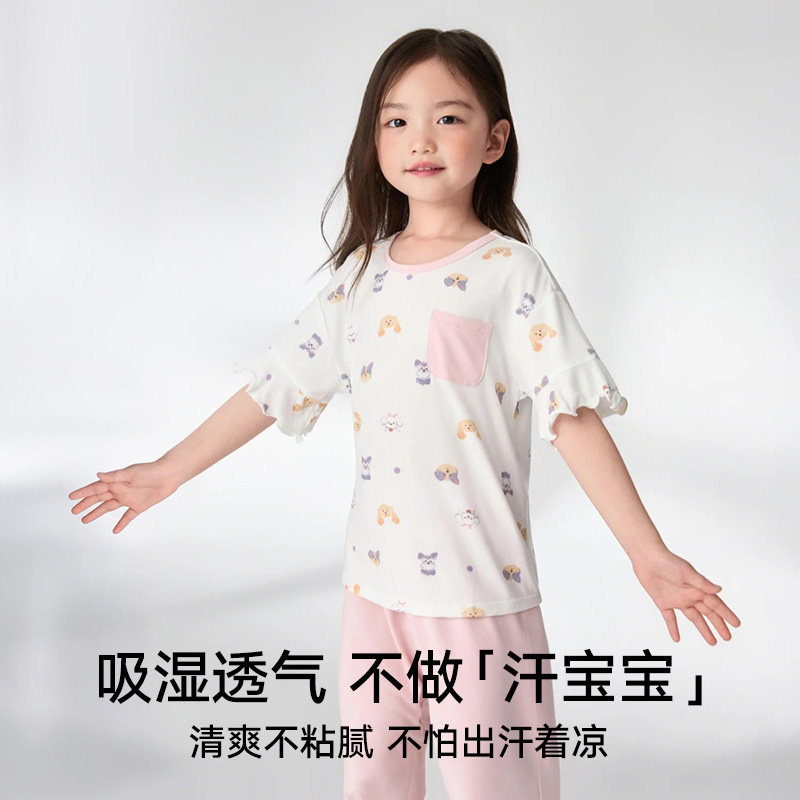 松山棉店儿童家居服套装女童26年夏季新款莫代尔短袖可爱睡衣睡裤
