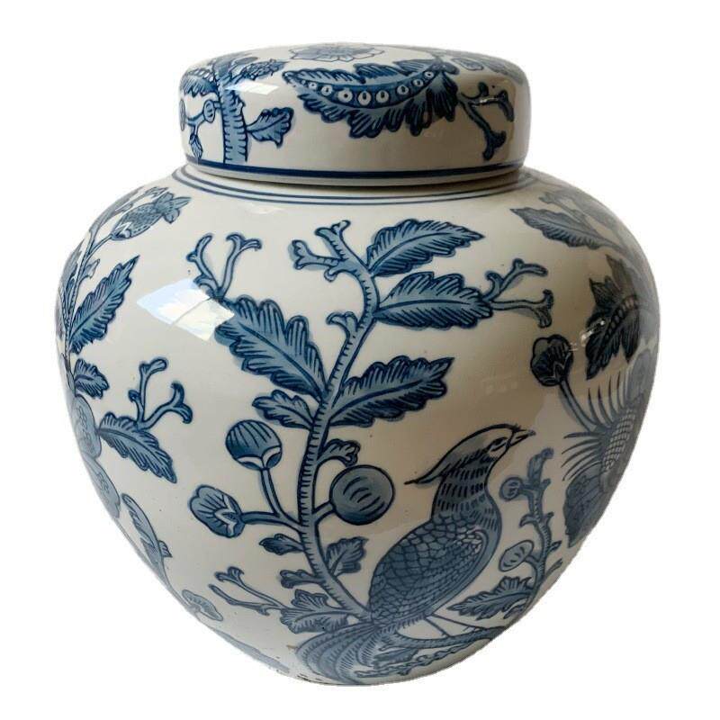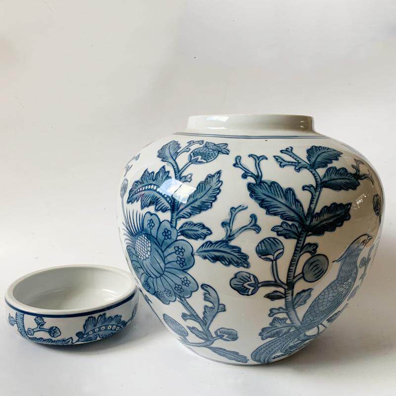 青花瓷陶瓷罐储物罐新中式装饰陶瓷花瓶摆件餐桌客厅插花电视装饰