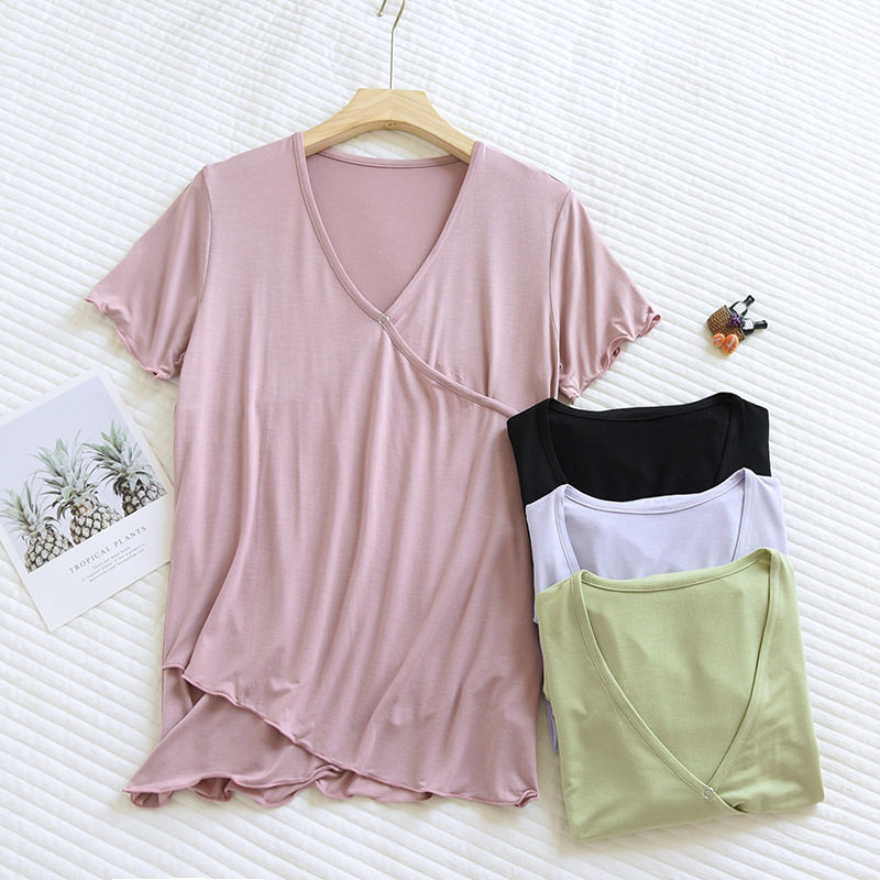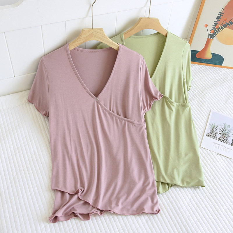 哺乳衣外出辣妈款春秋款打底衫春夏季薄款短袖喂奶上衣月子服夏装