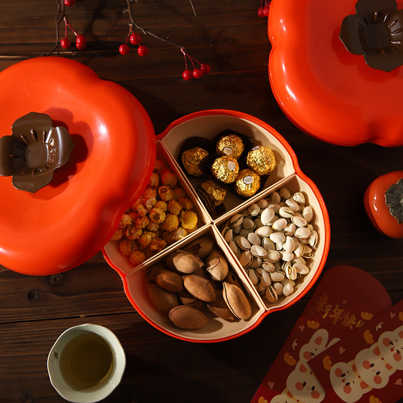 舍里 柿柿如意果盘干果盒茶几干果零食摆放盘瓜子点心防潮收纳盒