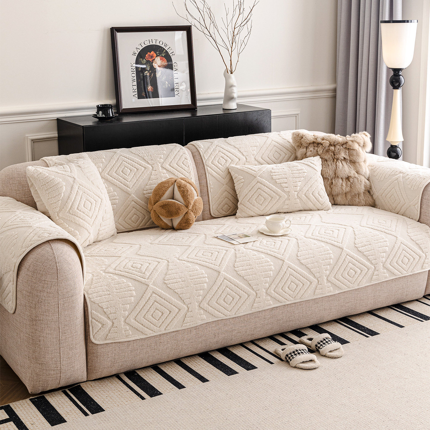 冬季加厚保暖毛绒沙发垫奶油风防滑坐垫简约冬天直排沙发坐垫套罩