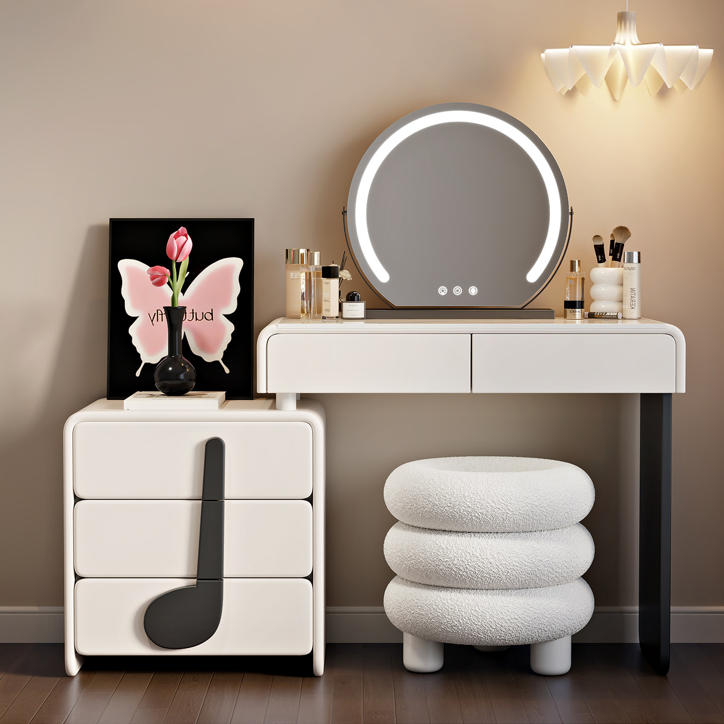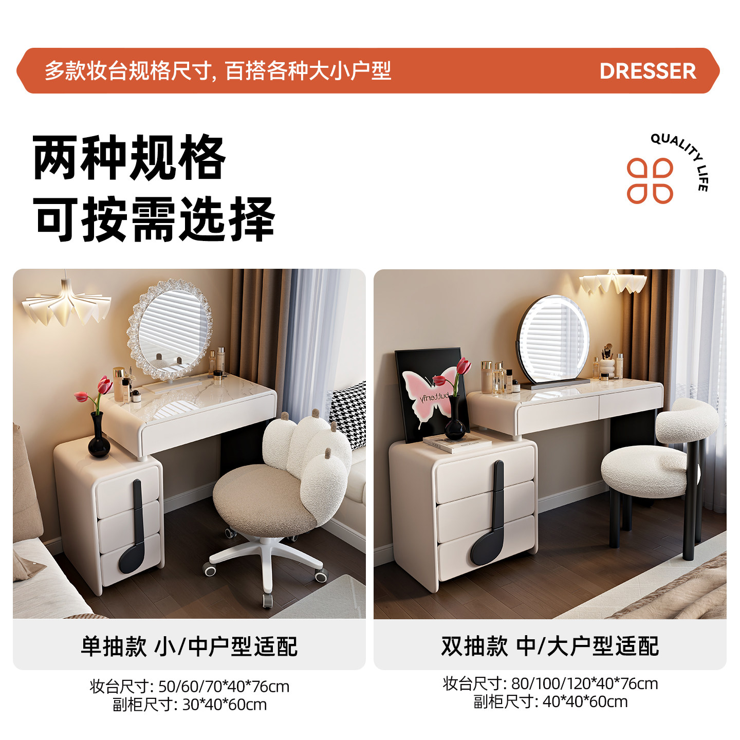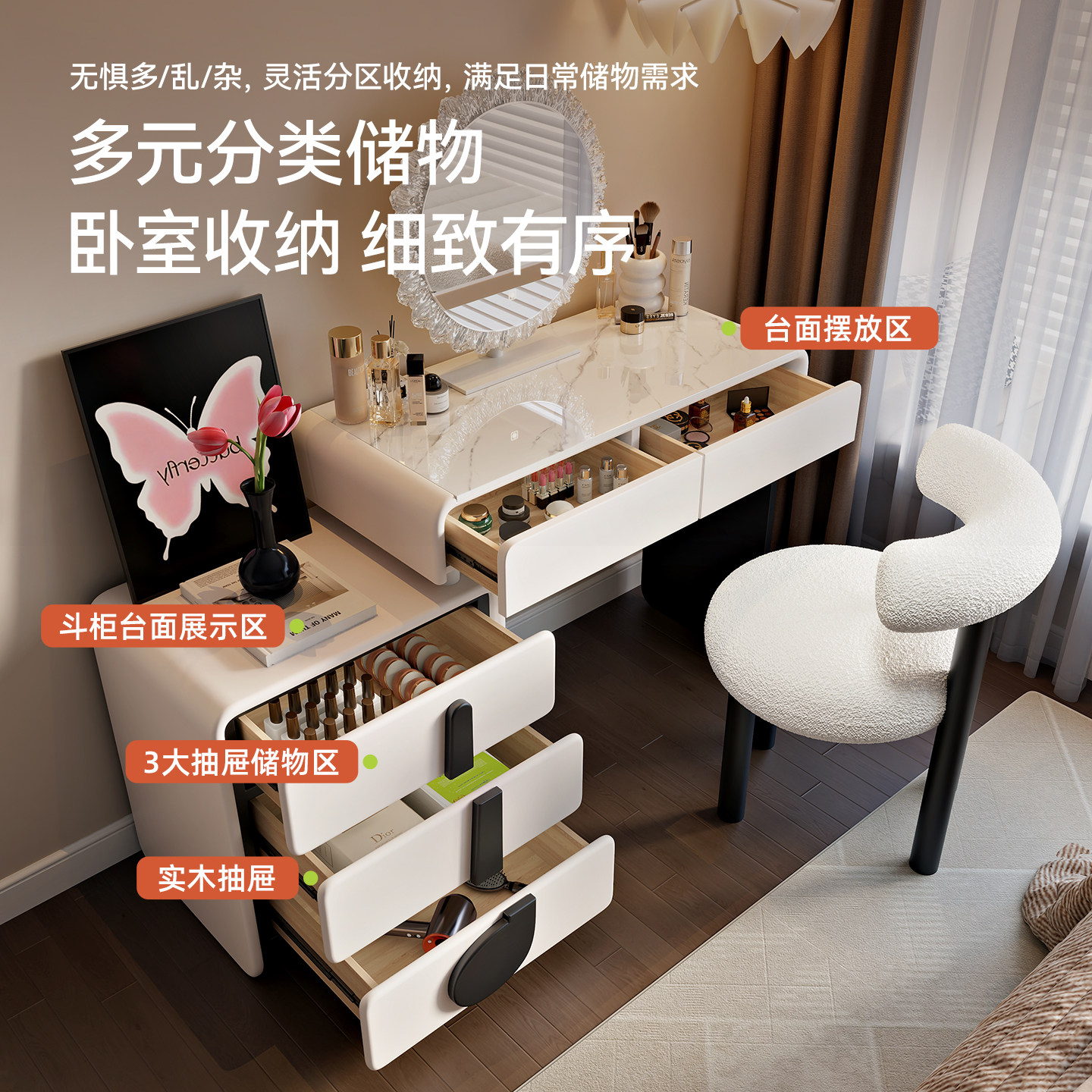 梳妆台斗柜一体2025新款现代卧室简约化妆桌奶油风高级床尾收纳柜