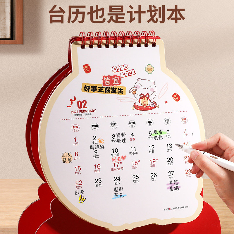 台历2026年新款日历定制logo创意简约小清新韩式办公年历个性中国风桌面摆件商务工作记事计划本订制广告月历