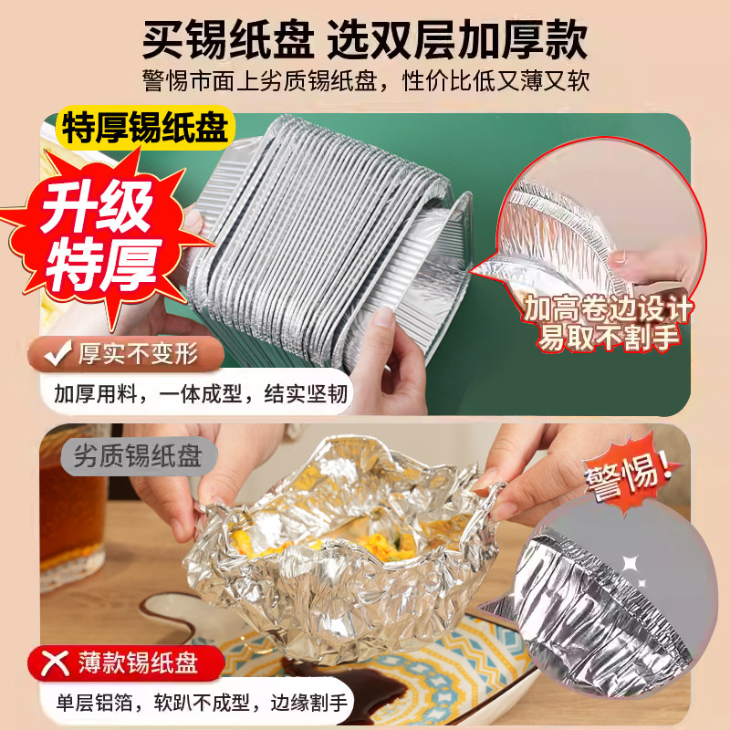空气炸锅专用加厚锡纸盘盒烧烤箱烘焙锡箔碗家用锡纸盒食品级圆形