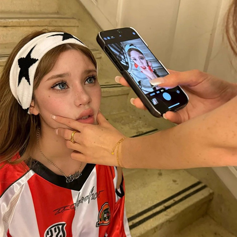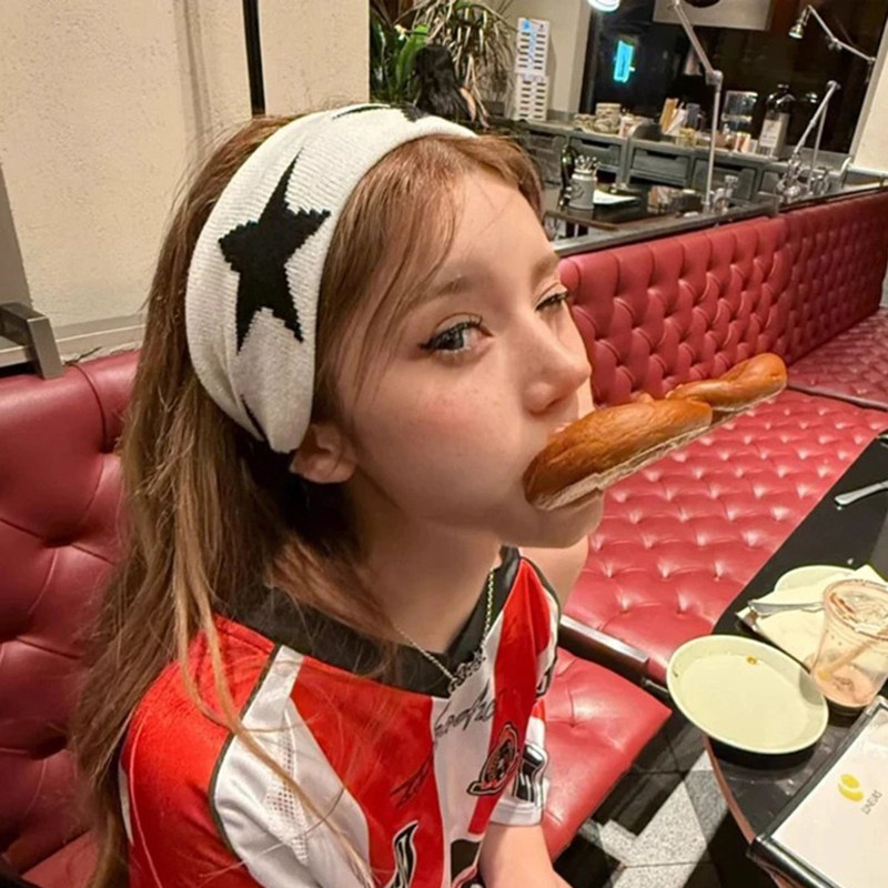 美式复古五角星针织束发带嘻哈宽边弹力头箍时尚简约休闲运动头带