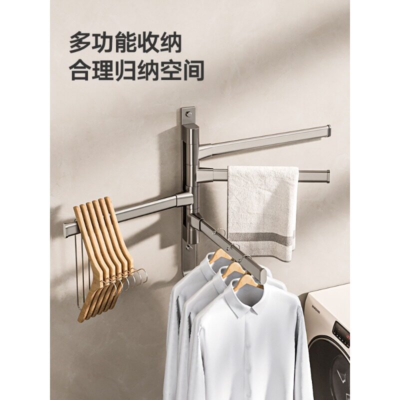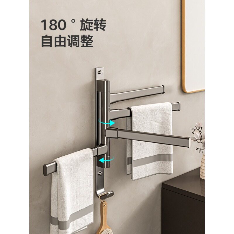浴室旋转毛巾架免打孔卫生间转角毛巾杆挂杆卫浴厕所洗手间壁挂式