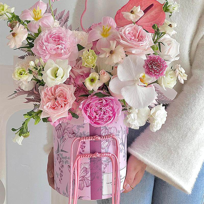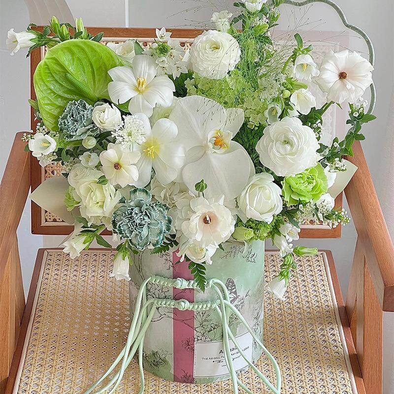 中式花卉抱抱桶 鲜花束插花桶中国风旗袍风DIY礼物桶花艺花店定制