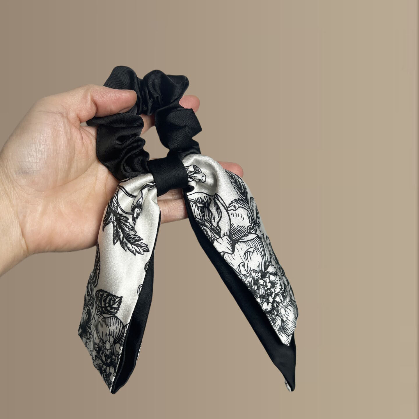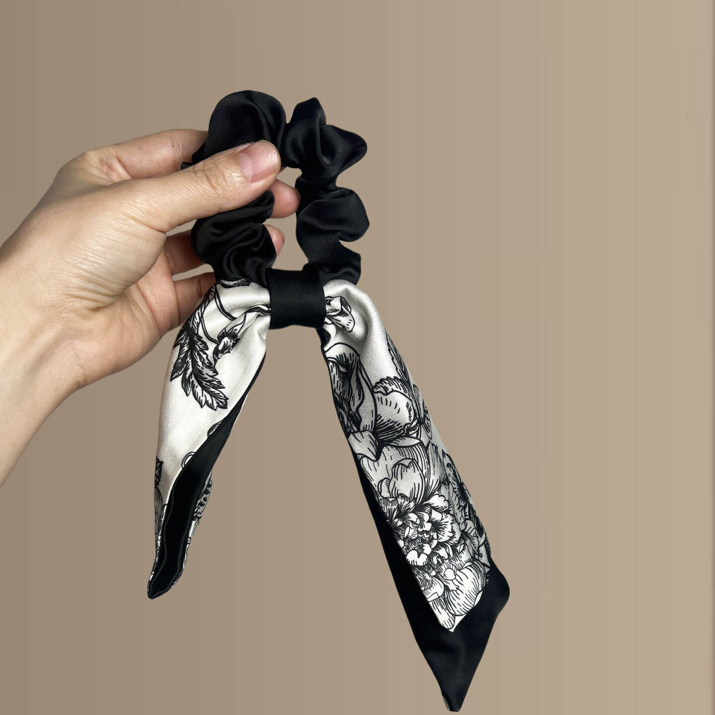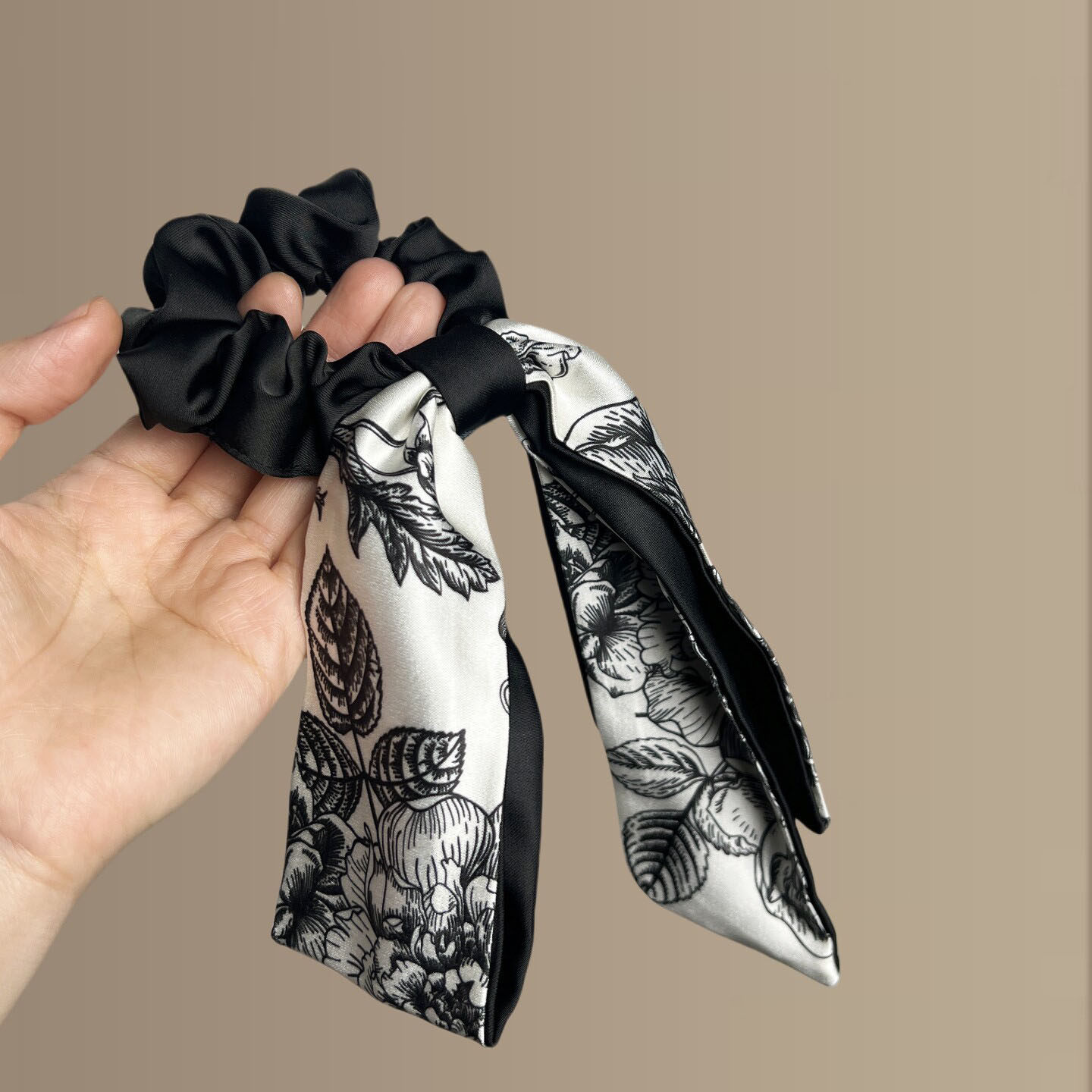 香港新中式蝴蝶结大肠发圈头饰2026新款古风旗袍水墨印花飘带发绳