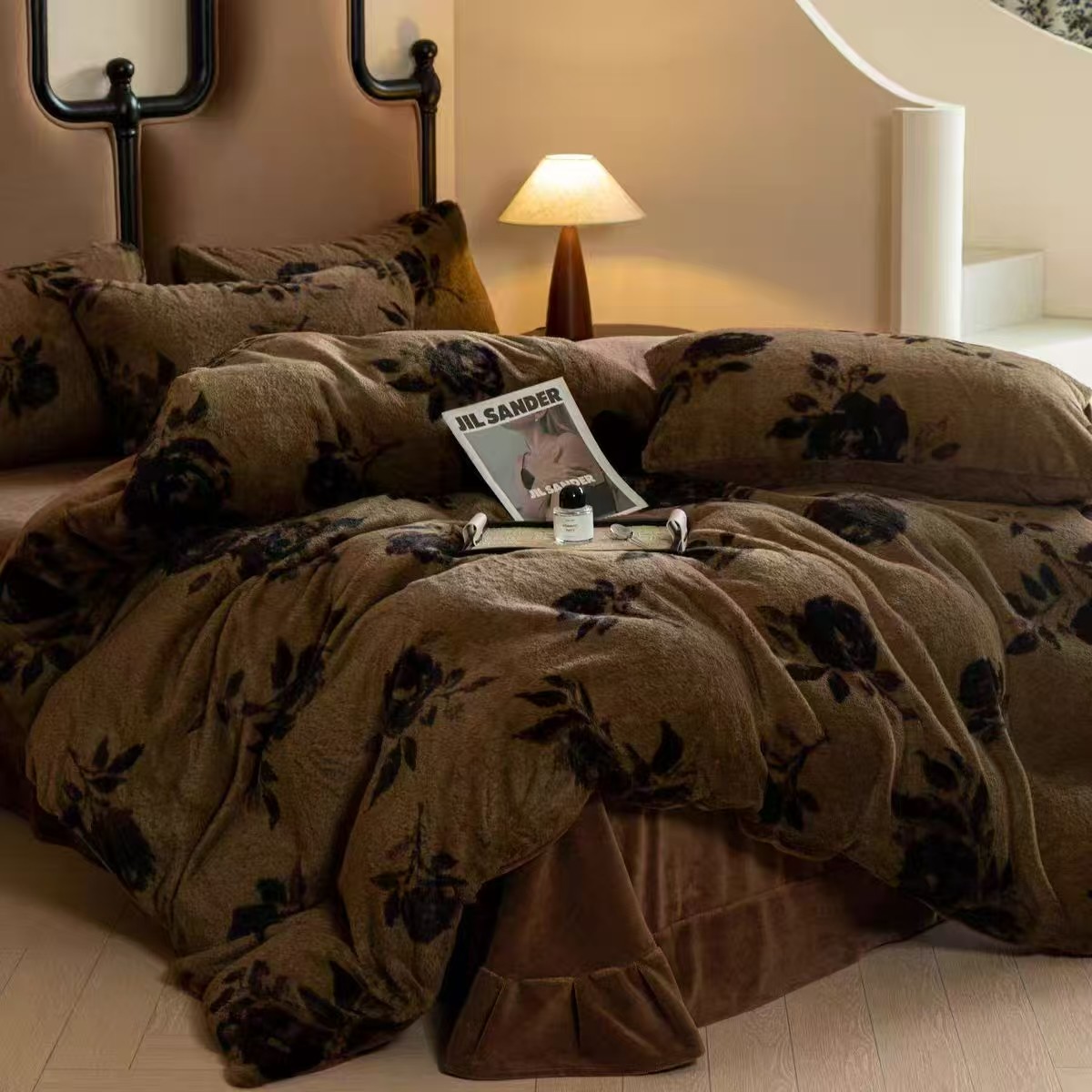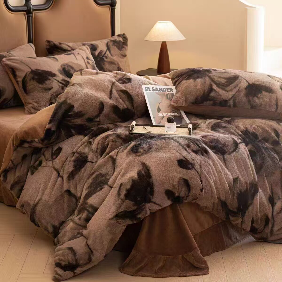 轻奢老钱风丨高克重牛奶绒四件套高密度珊瑚绒床单款被套床上用品
