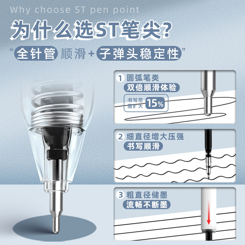 ST刷题笔按动中性笔高颜值学生专用考试0.5速干顺滑碳素笔黑笔圆珠笔按压式黑色水笔做笔记水性笔签字笔文具