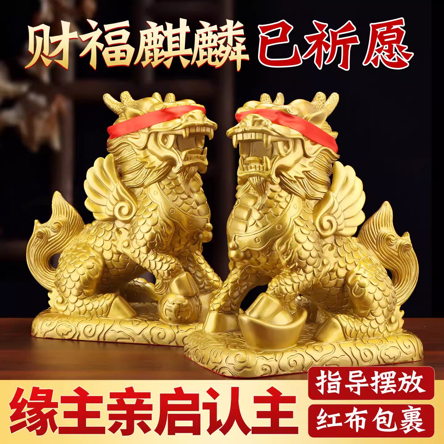 铜麒麟摆件公母一对八卦火麒麟办公室客厅入户玄关装饰品乔迁礼物