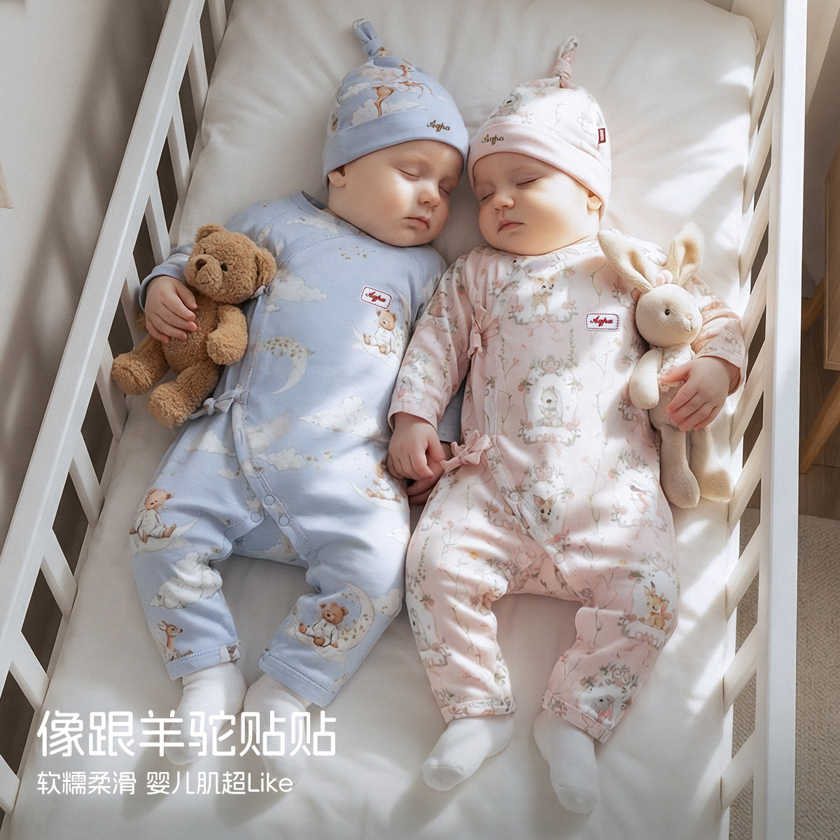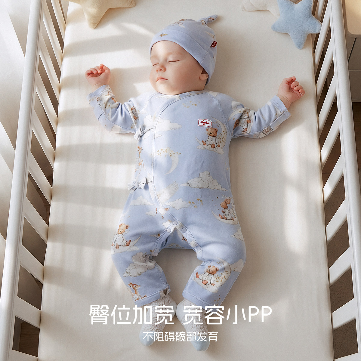 aqpa爱帕新生儿连体衣纯棉春秋新款满月宝宝衣服婴儿哈衣爬服睡衣